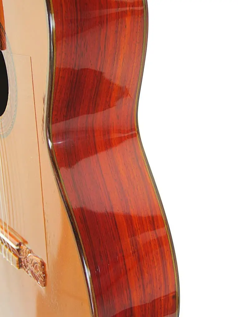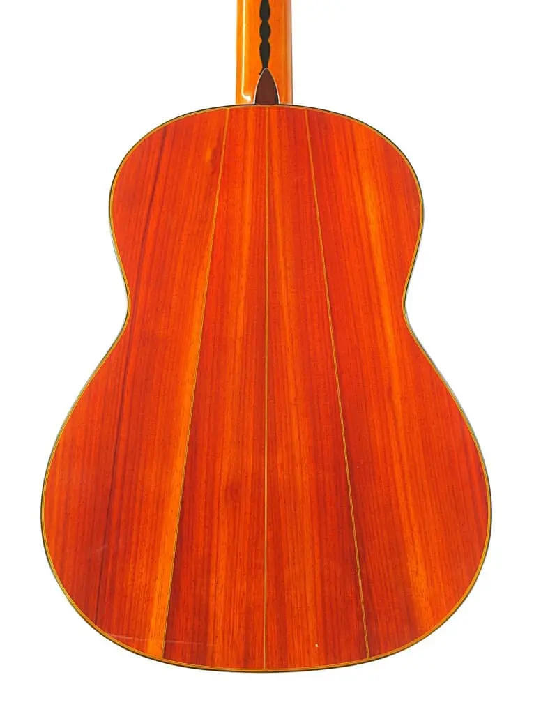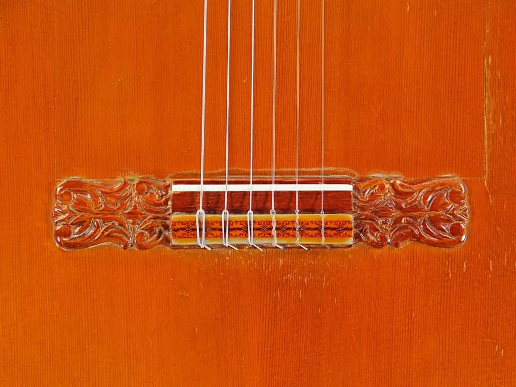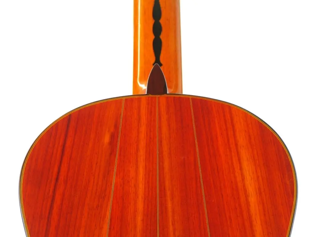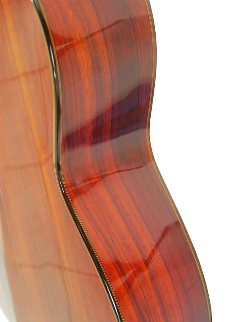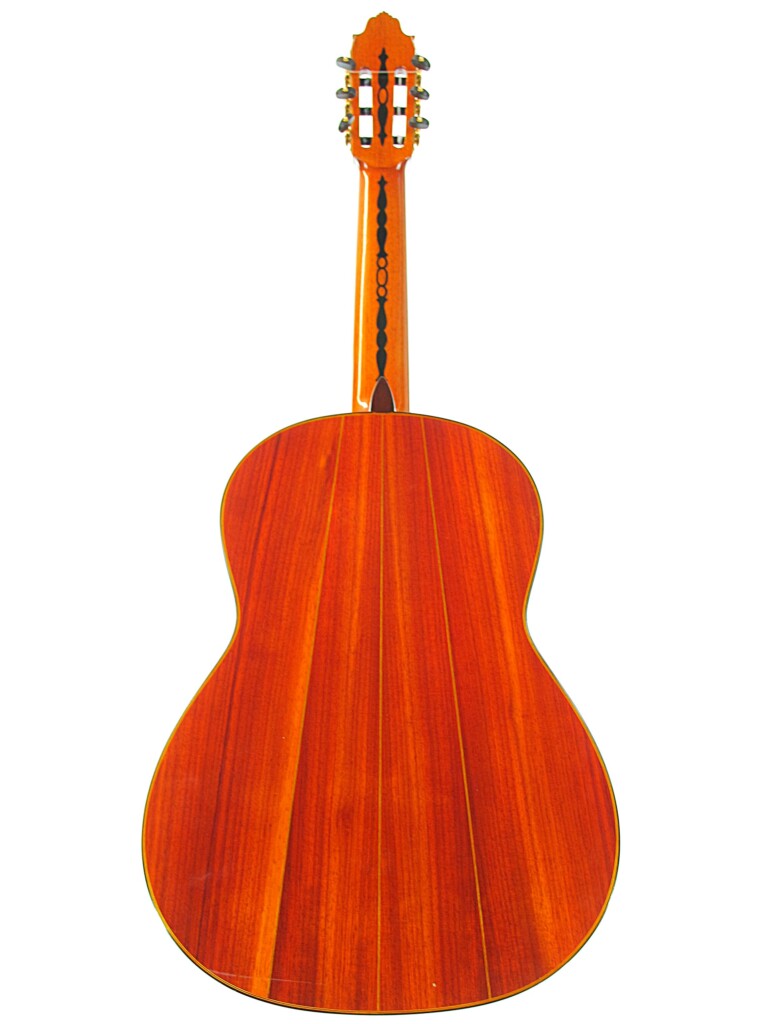 This Jose Ruiz Pedregosa 1993 Negra Flamenco Guitar is a very special model. It is simply magnificent and a work of art. The headstock has beautiful carvings as well as the bridge. The woods of this guitar are of very high quality. It has a cedar top and rosewood back and sides. The amount of work involved in this construction work was huge.