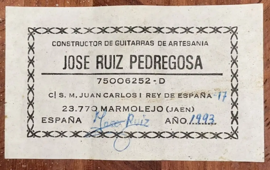 Jose Ruiz Pedregosa is the only disciple of the Spanish luthier Jerónimo Peña Fernández. He builds handmade classical and flamenco guitars which are works of art.