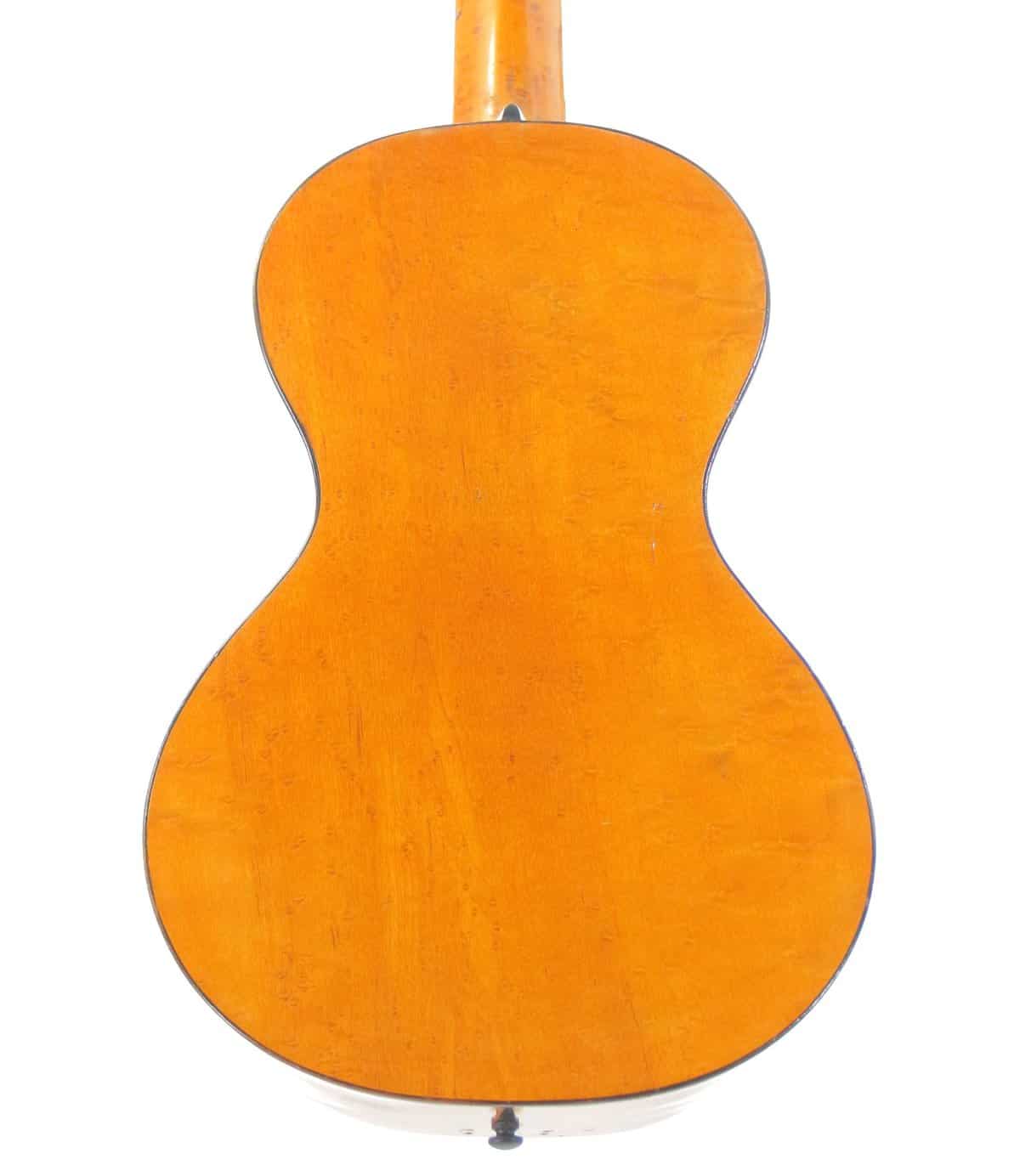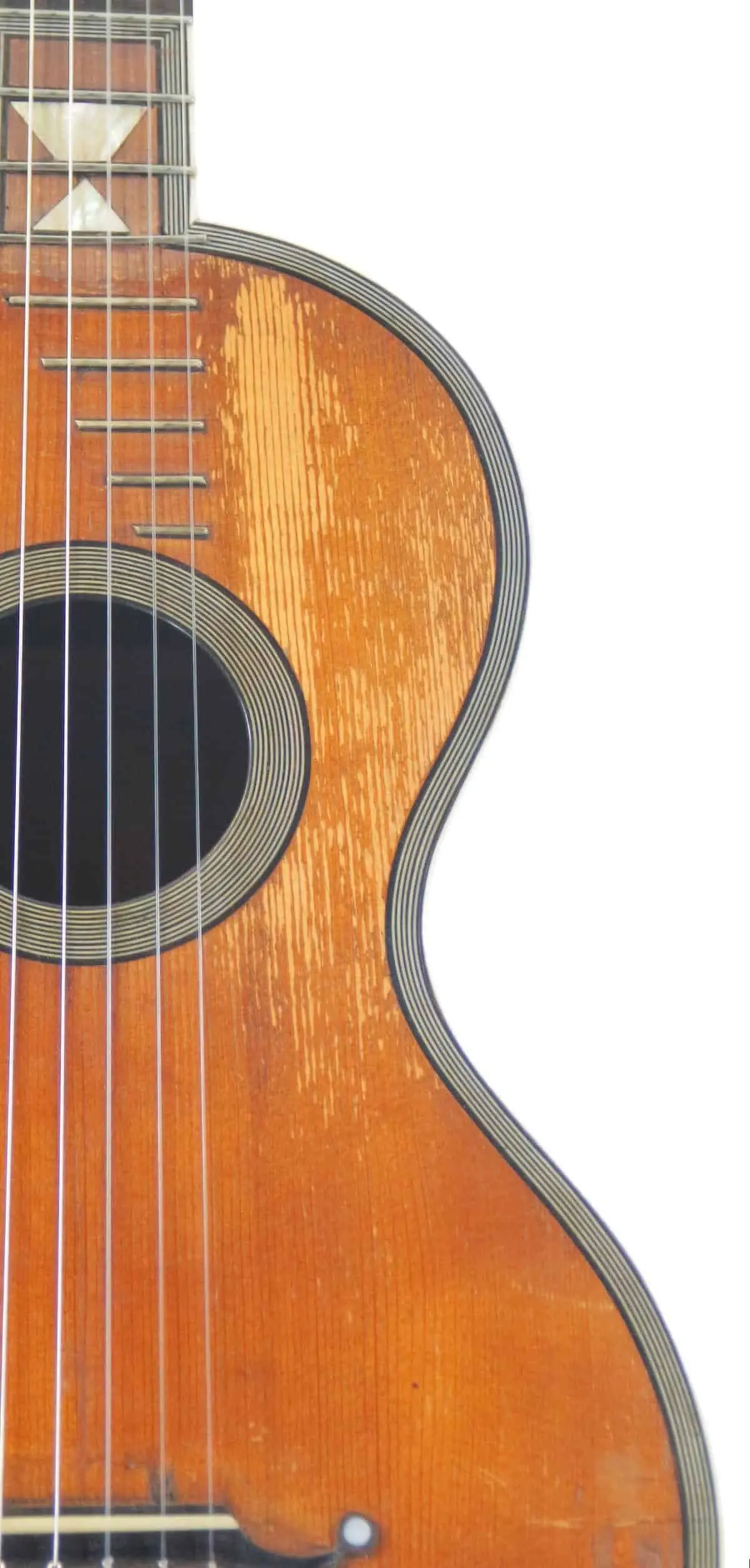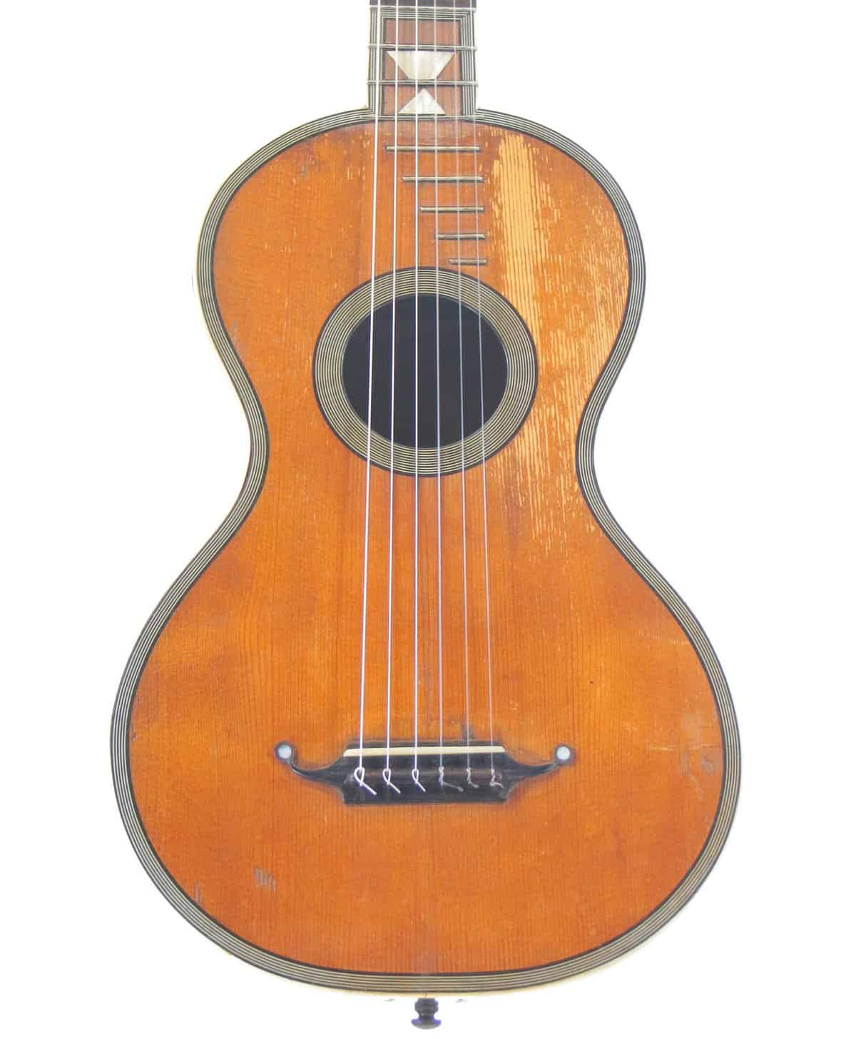 This finely built guitar has a mark on the back that reads “Lacombe a Nantes”. Lacombe was the name given to the violin and guitar maker Joseph Garaboeuf. Garaboeuf’s instruments are known for their excellent craftsmanship and outstanding musical qualities. His violins did indeed fetch prices beyond €20,000 at auctions. There are very few guitars by this master that have survived to the present day.