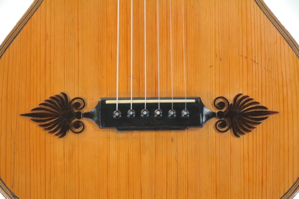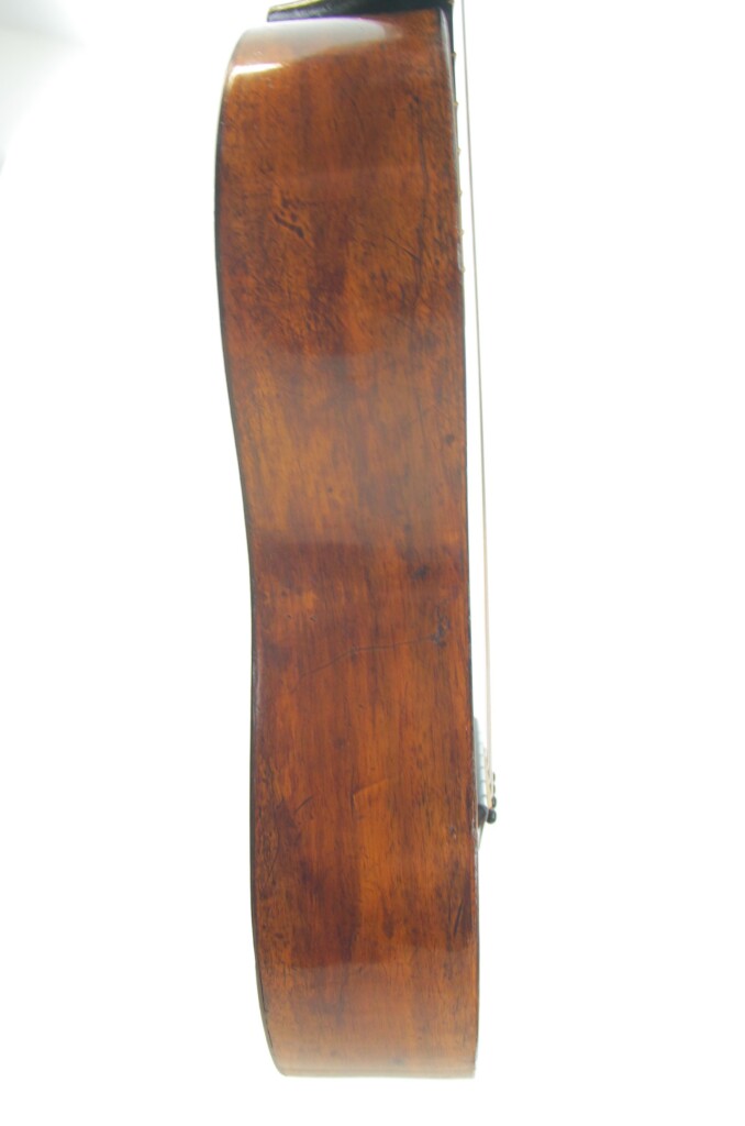 The sound of this Joseph Kriner 1865 romantic guitar is powerful and sweet at the same time – it has a deep body and this creates a sublime, almost majestic sound. Combined with the shape of the body, the sound is very finely projected and has a very sweet and mellow note.