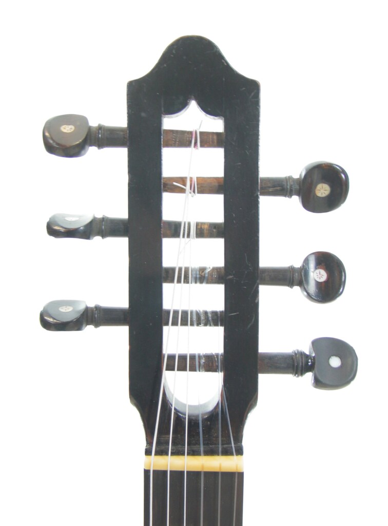 The beautifully crafted headstock and the fine ornamentation are outstanding.
