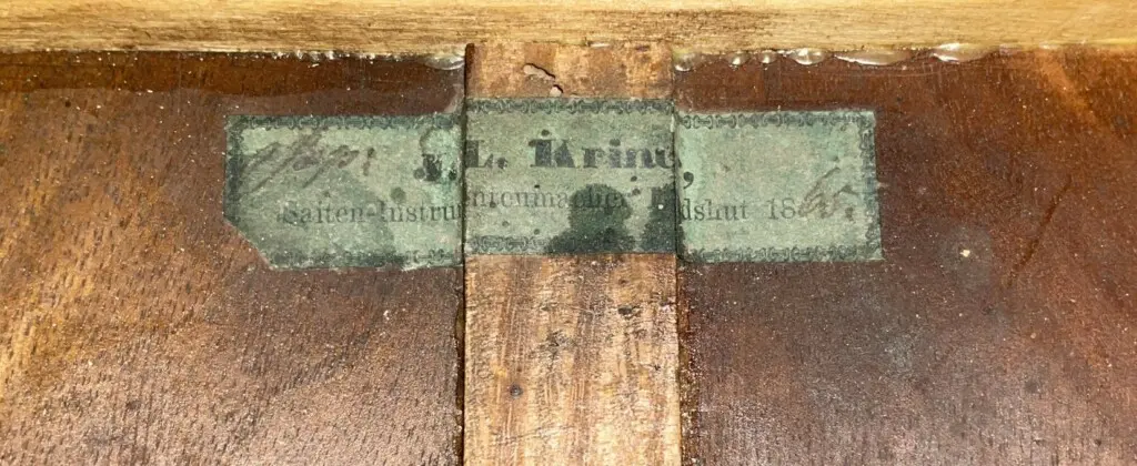Joseph Kriner was born in Landshut in 1836 as the son of the instrument maker Lorenz Kriener. He spent his apprenticeship with his father and with Georg Tiefenbrunner in Munich. After his apprenticeship, he worked for Karl Eichinger, Alois Engleder and Karl Padewet in Munich, as well as for Johann Padewet in Karlsruhe and Adolf Bauer in Stuttgart. After the death of his father, he took over his father’s workshop in Landshut in 1864.