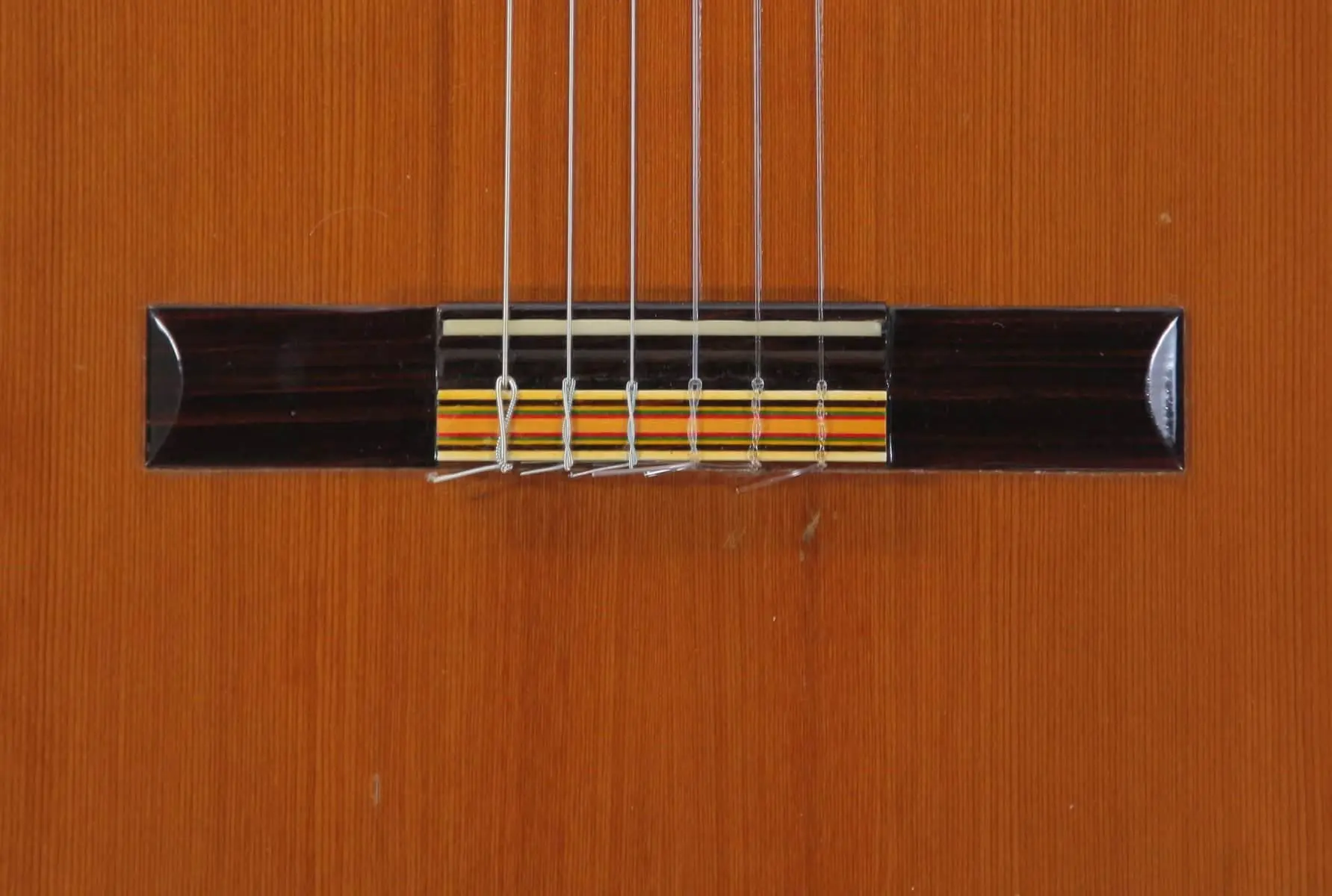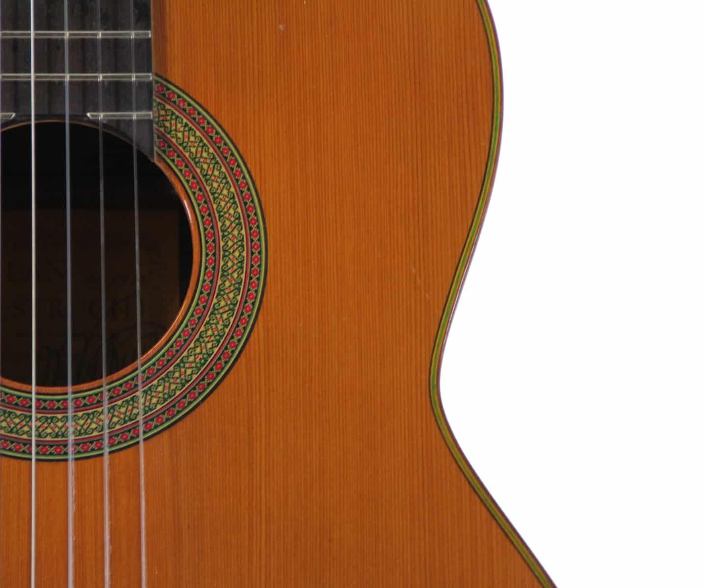 This Juan Estruch 1976 – Chet Atkins yellow label classical guitar is in a good condition, without cracks or repairs. But you can see the wear from play and use – this guitar has definitely been loved and played a lot!