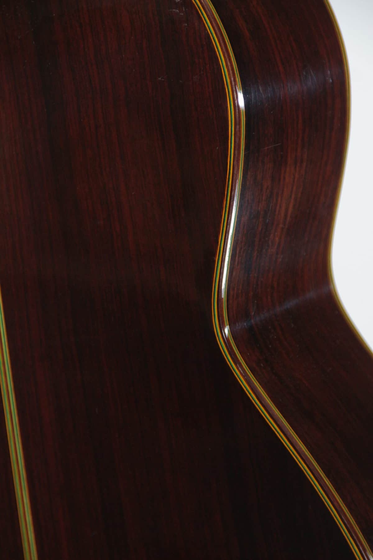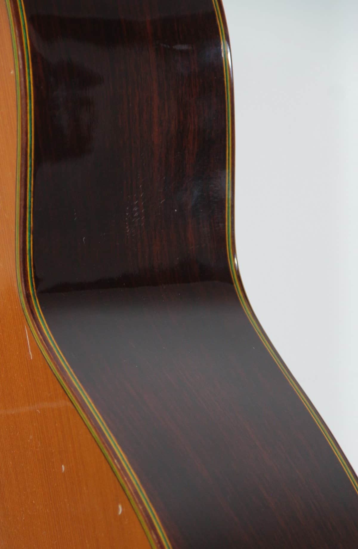 Like the Atkins guitar, this guitar is a yellow labelled, masterbuilt guitar. It has beautiful rosette inlays. Rosewood back and sides and a cedar top, 645 mm scale length and 52 mm nut width.
