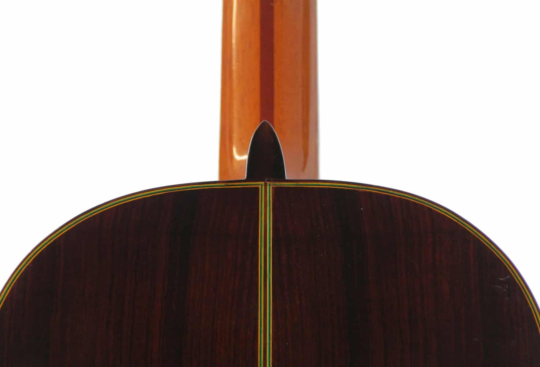 The sound of this Juan Estruch 1976 – Chet Atkins yellow label classical guitar has the fullness, robustness and depth that guitarists are searching for. The tone is thick yet clear and has an essential warm, mysterious and moody quality. The sound comes with controlled and balanced layers of overtones stacked on the crystal-clear fundamental. It has an almost cathedral-like presence, which gives it plenty of power for any concert hall – it has a thundering presence and is a true “concert grand” of a guitar.