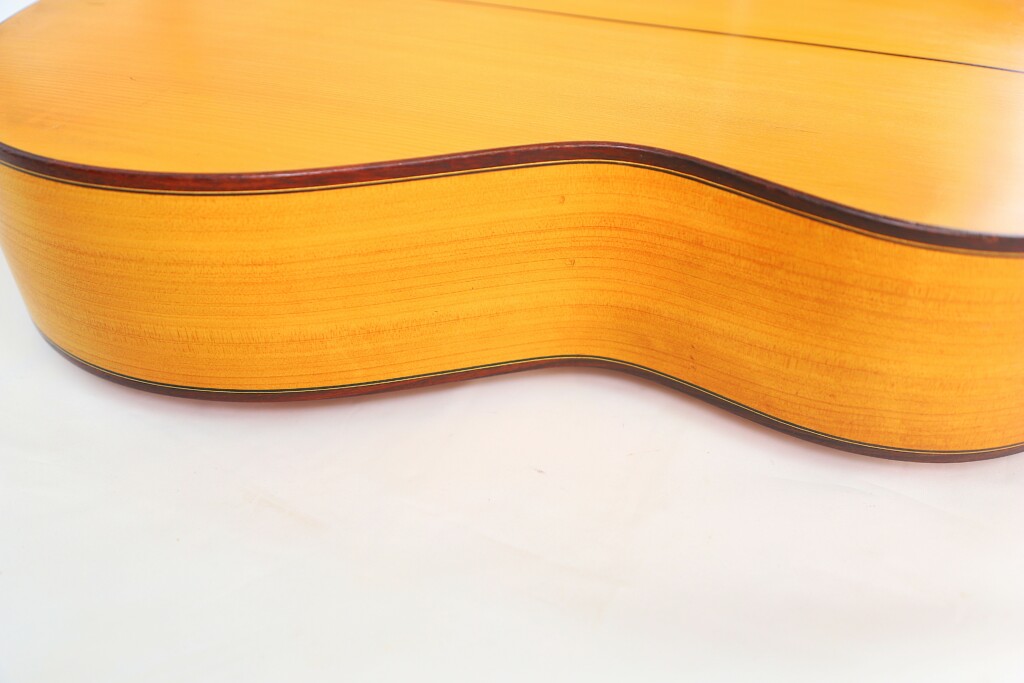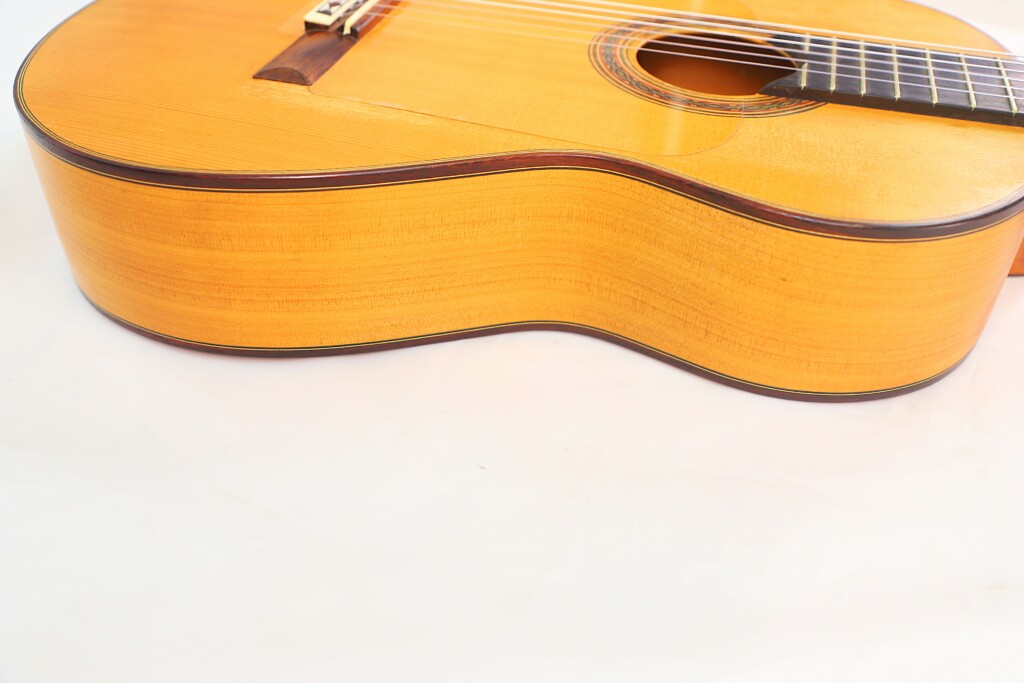 The tonal quality of this guitar is truly inspiring, exceeding the expectations of even the most discerning player. The basses are powerful, boasting a dry and percussive character that is perfect for traditional flamenco styles. The trebles are crystal clear, vibrant, and rich in overtones, with a stunning range and definition. The overall sound is well-balanced, with extraordinary responsiveness and a dynamic range that can bring any flamenco performance to life. Its voice is both commanding and nuanced, making it a joy to play whether for live performance or recording.