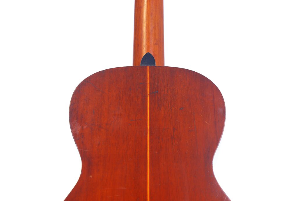 Any discussion of the finest flat-top guitars ever made will soon enough come around to the work of Carl and August Larson in Chicago between 1900 and 1940. Here is a well-played but still excellent example of their wonderful work, in this case labeled with their own “house brand” Maurer. Larson instruments have become recognized as both uniquely desirable and historically important in recent years, and they are among the most sought-after acoustic guitars.