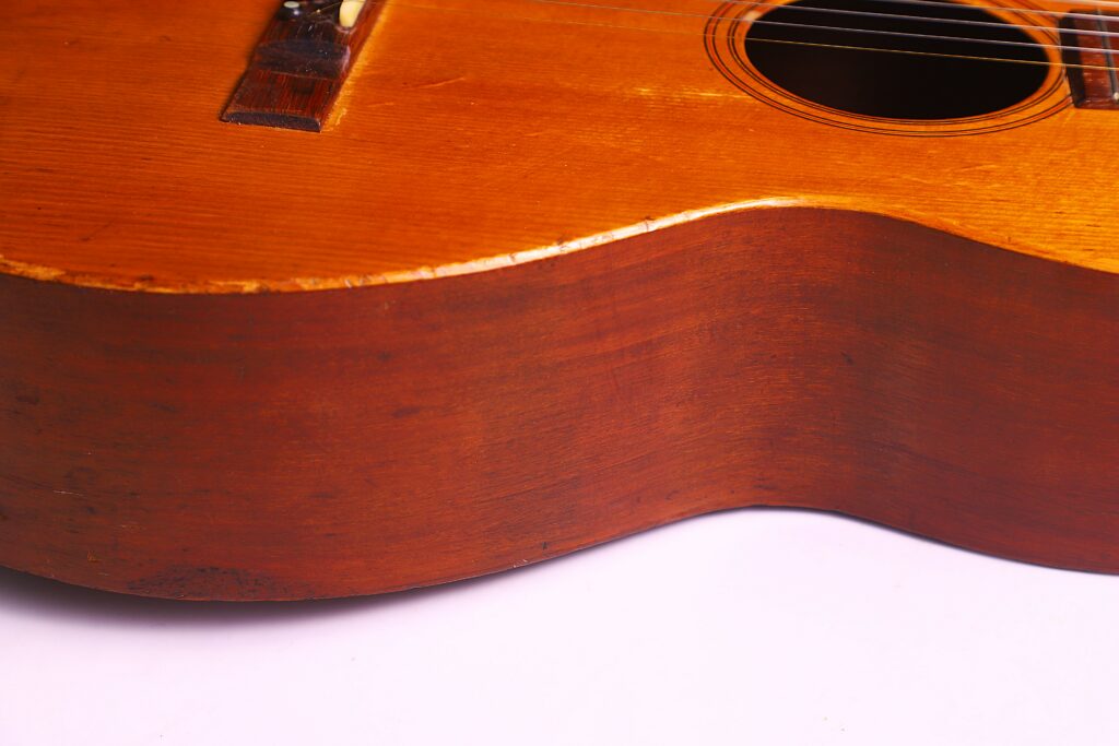 This Larson Brothers 0-style Maurer 1920 Acoustic Guitar has some old repairs, but is a very fine playing and sounding instrument with a lot of character. The finish shows numerous spots of wear from play and use. The guitar has had a neck reset, a refret and a new bridge – it is now a superb player.