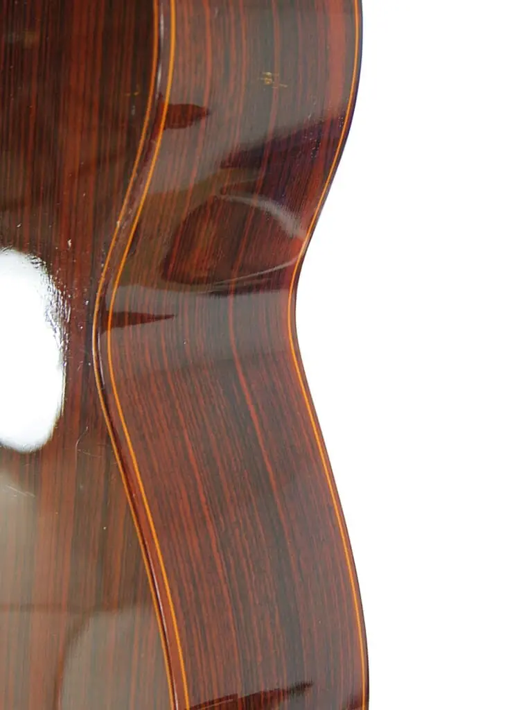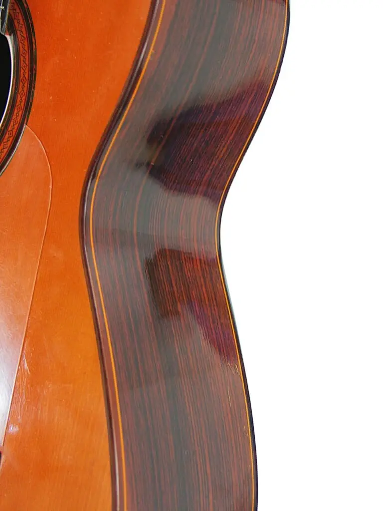 This Lorenzo Alvarez 1976 flamenco guitar is very special as it is exactly in the same building style of the Arcangel Fernandez’ guitars we had in our shop – they sound almost exactly the same. It is built under the label of Arcangel Fernandez (Lorenzo and his brother Juan had a close relationship to Arcangel Fernandez).