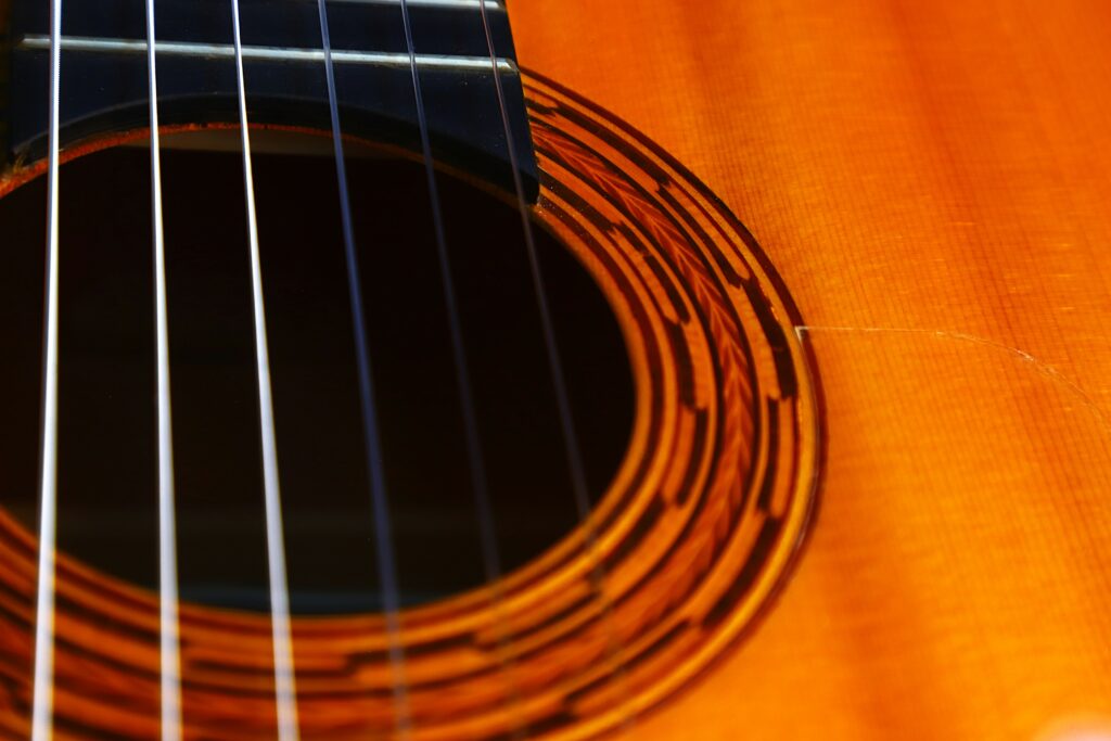 The guitar is very light and has a spruce top and beautiful cypress back and sides. It has beautiful decoration elements and looks stunning.