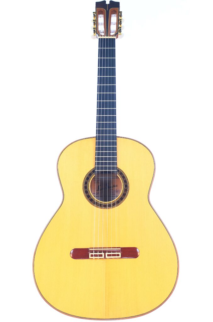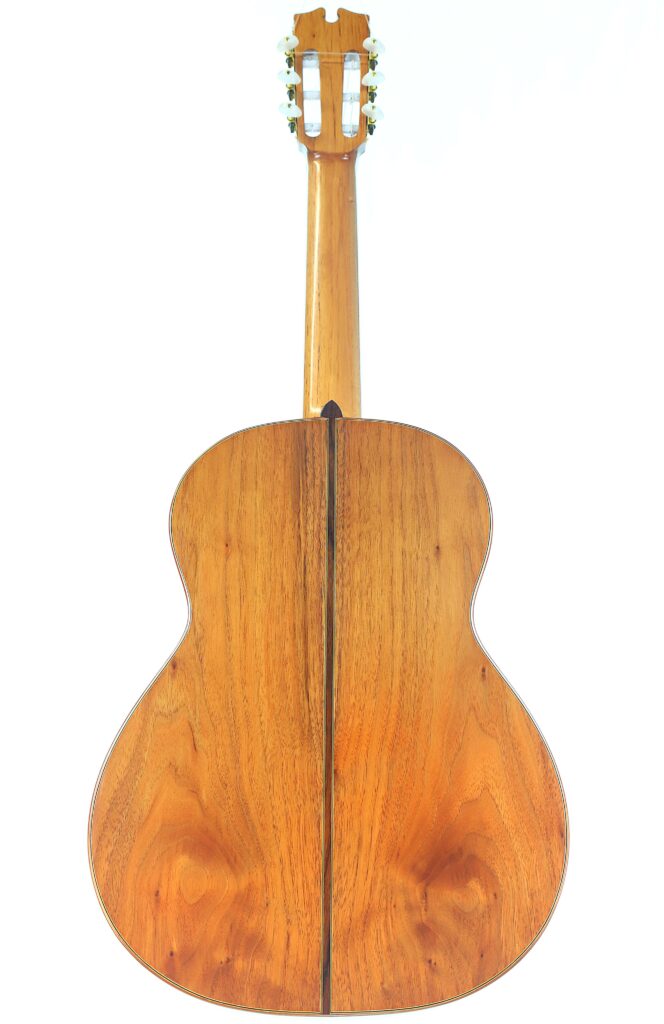 The guitar delivers a traditional flamenco sound to perfection, with a fast attack and a sharp flamenco tone that instantly excites and captivates. It boasts beautiful basses while maintaining an excellent balance. The walnut construction adds wonderful depth and brilliance to the sound. The tone is a perfect blend of beauty and true flamenco aggressiveness. When played gently, it sings with a sweet, warm, and full voice; however, when pushed even slightly, it awakens with a powerful bark that only the finest flamenco guitars can produce.
