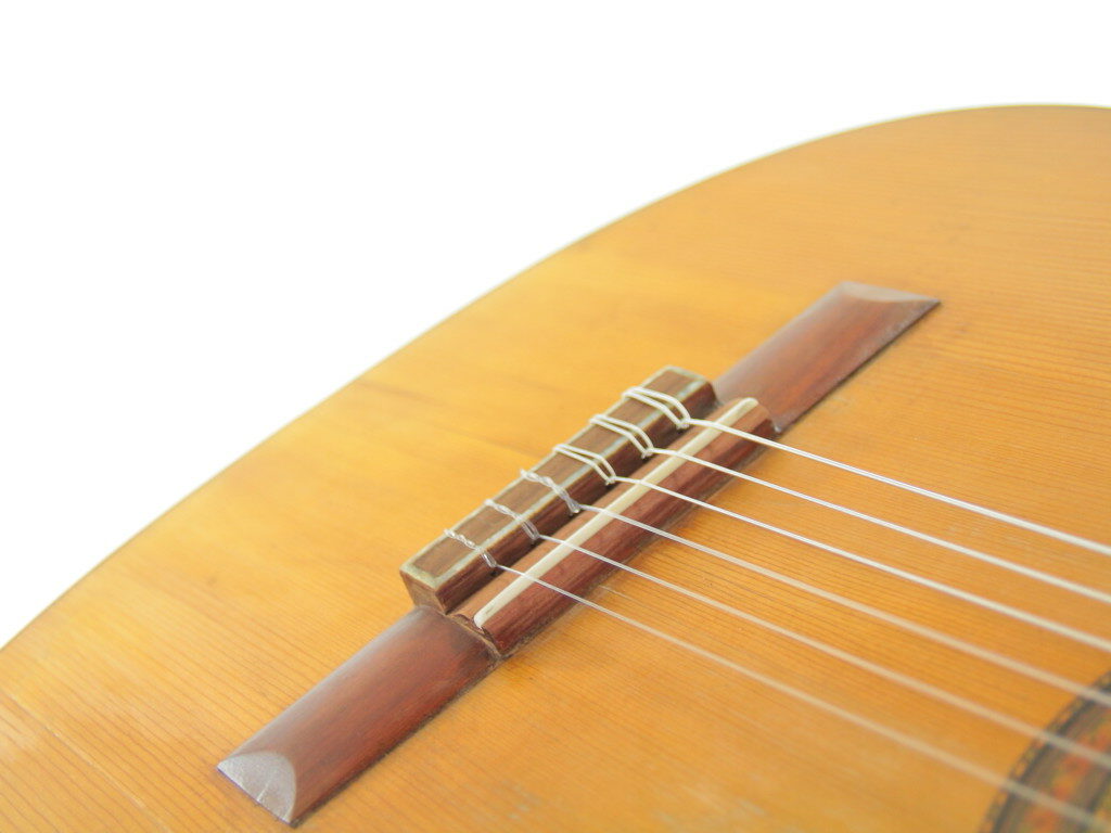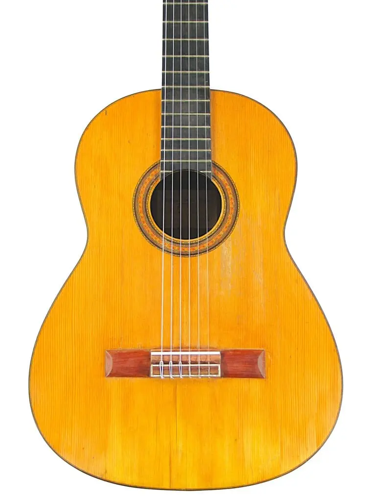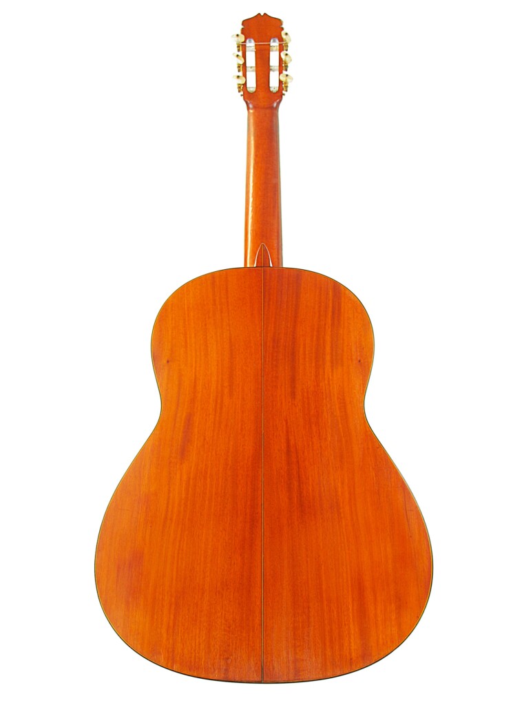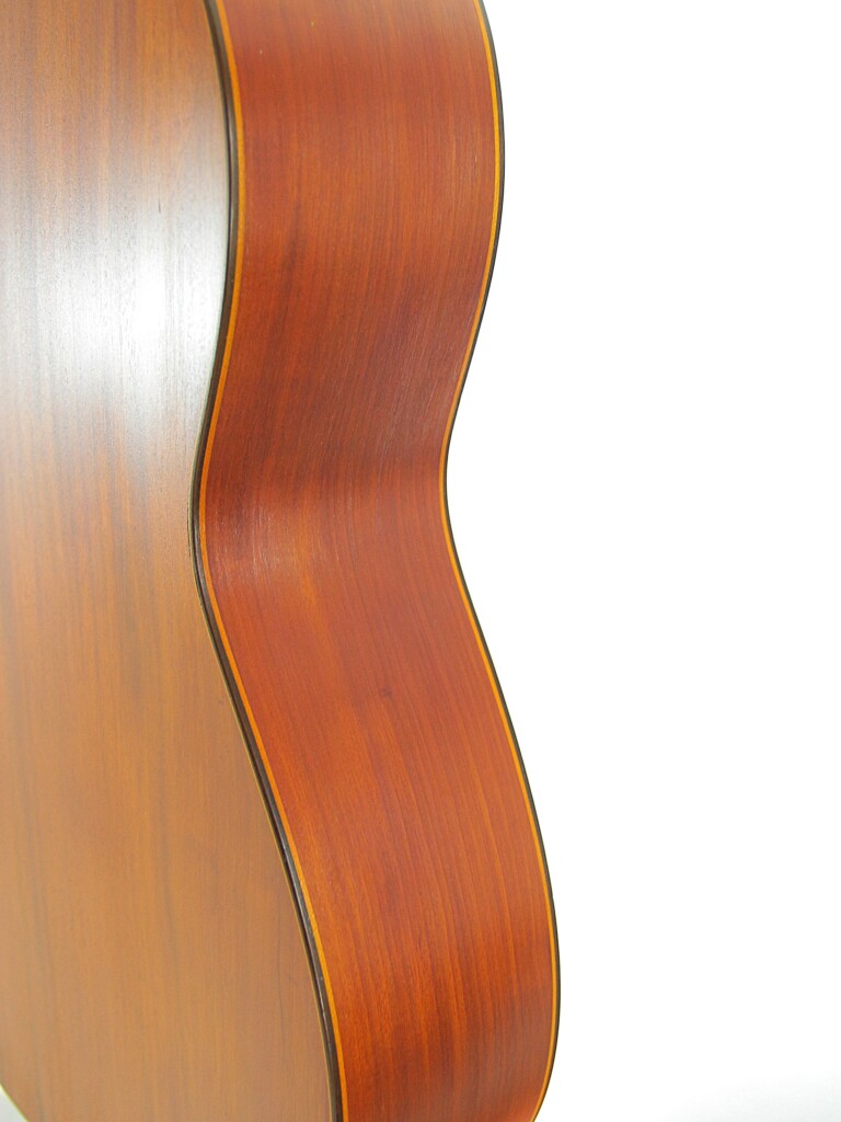 This Manuel de la Chica 1968 classical guitar has been restored. Some cracks have been repaired and the guitar has a newer finish as well as a new bridge. The scale length is 660 mm and the nut width 53 mm. It comes with a newer guitar case.