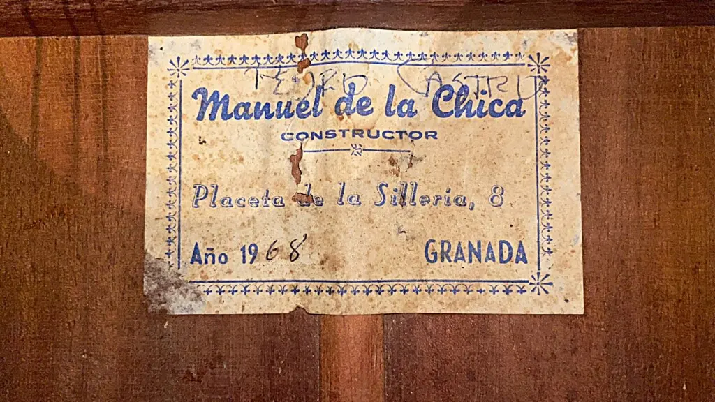Manuel de la Chica (1911-1998) is one of the most important guitar builders from Granada up to date. He was a self-taught luthier who studied and reproduced the guitars of Santos Hernandez in the 1930s. He later spent some time in Pepe de la Alhambra’s workshop, who worked with Benito Ferrer, before setting up his workshop. Unfortunately, he had to retire due to a health problem caused by the inhalation of dust and chemicals in 1973.