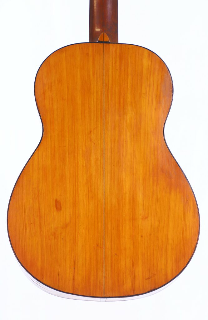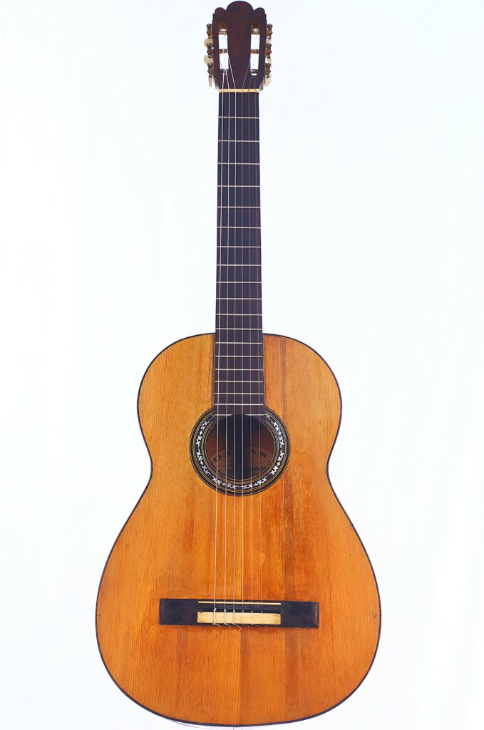 Manuel de Soto y Solares (1839-1906), born into a lineage of guitar makers in Sevilla, was the son of Manuel de Soto Castañón (b.c. 1818-1878). Starting his craft around 1860, his workshop was located near that of Antonio de Torres. According to Romanillos, Soto y Solares and Torres engaged in business together. It was common practice among makers to exchange or trade woods, parts, and occasionally subcontract or purchase guitars to sell under their own labels. During the challenging years between 1865 and 1870, Torres, like many of his contemporaries, produced lower-priced guitars to sustain himself. This raises the fascinating possibility that some guitars attributed to Manuel de Soto y Solares could have been crafted by Torres during his time in Sevilla.