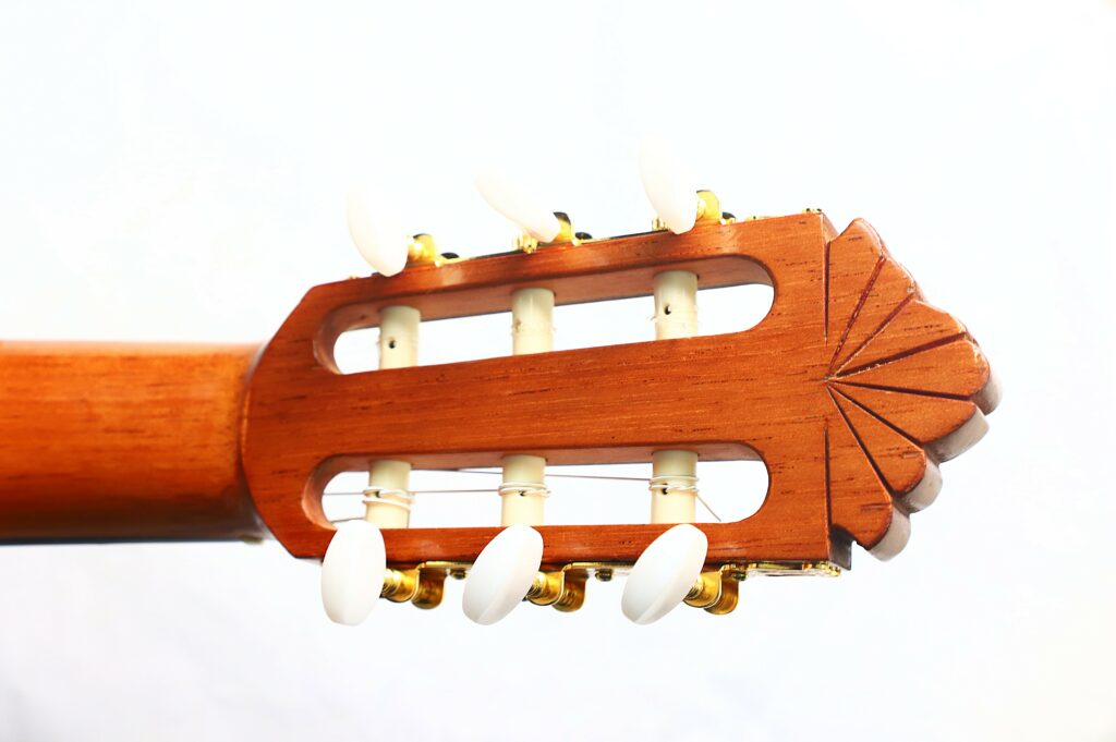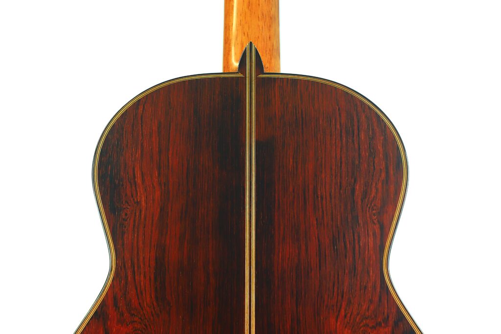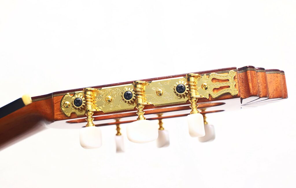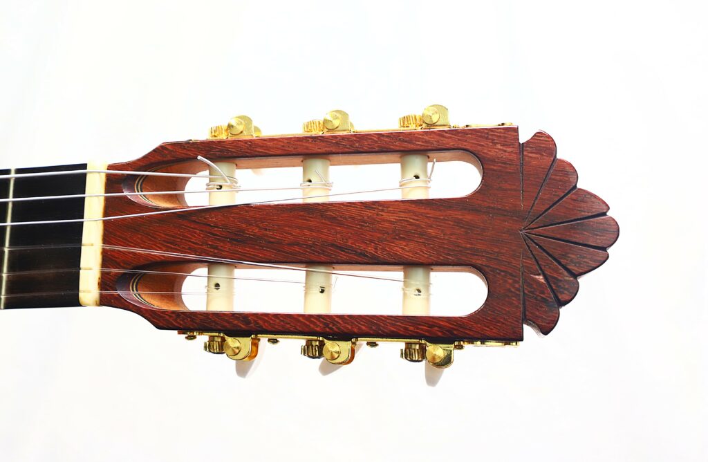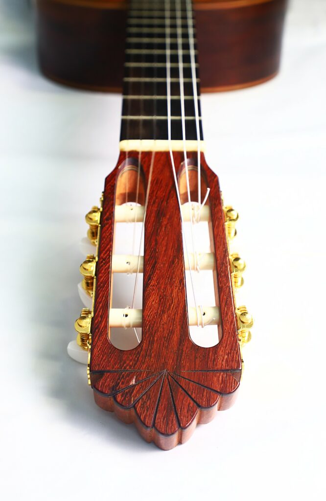 Its tone is rich yet clear, imbued with warmth, mystery, and a moody character. The sound is layered with controlled, balanced overtones that complement a crystal-clear fundamental, creating a cathedral-like resonance. This guitar delivers remarkable power, enough to fill any concert hall, and rivals instruments costing two to three times as much.