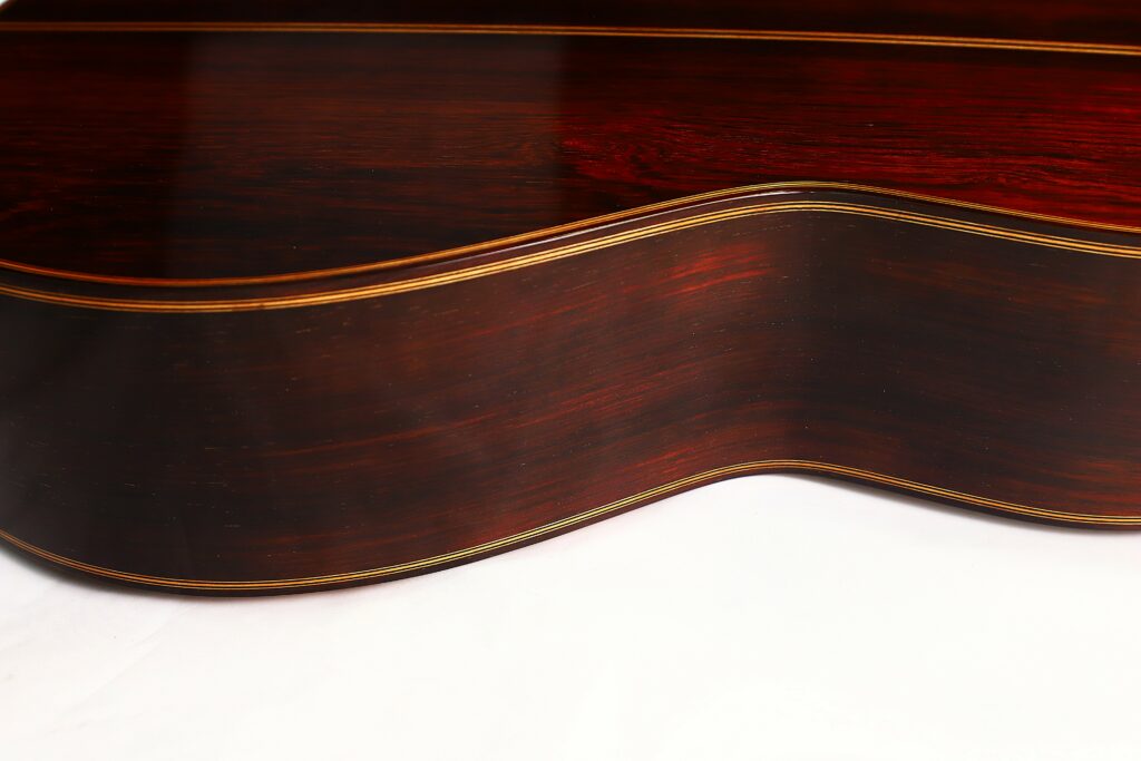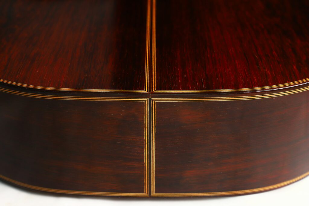 The guitar features a string action of 2.3 mm on the high E and 2.8 mm on the low E at the 12th fret, a nut width of 52 mm, and a scale length of 650 mm, ensuring exceptional playability and comfort. Constructed with a solid spruce top and rosewood back and sides, this guitar delivers a rich, warm tone that enhances its overall performance.