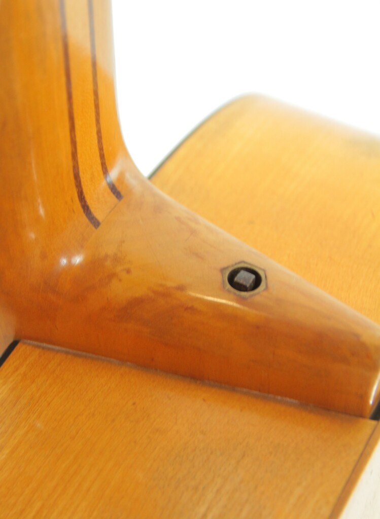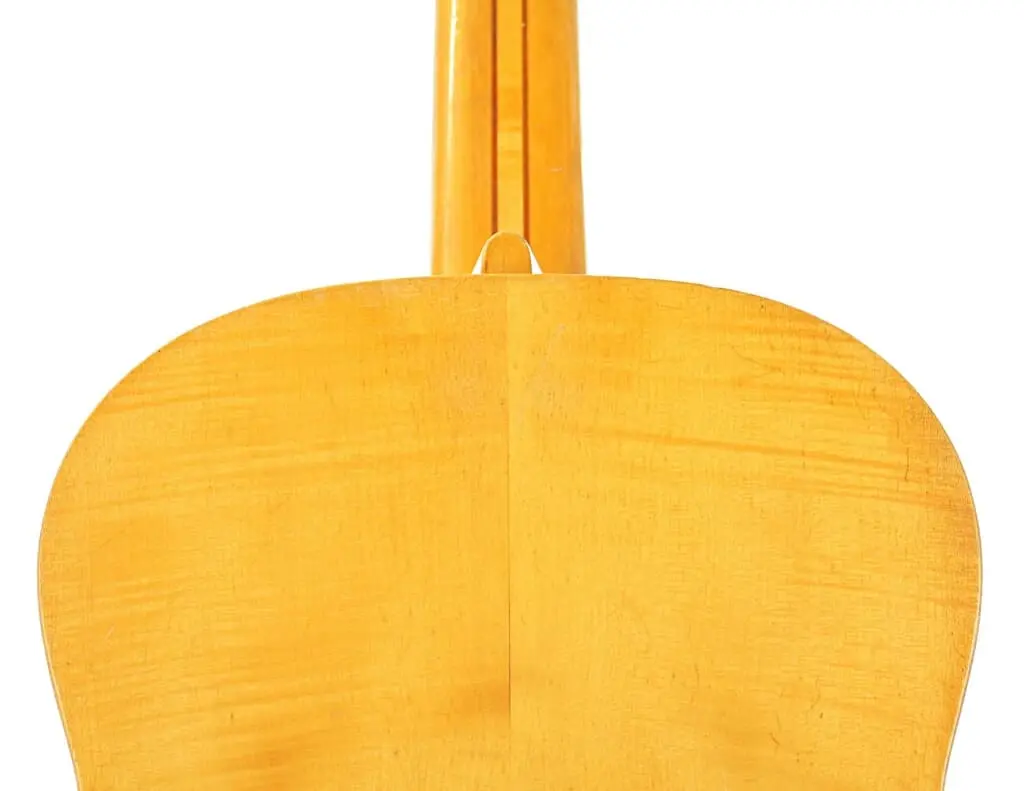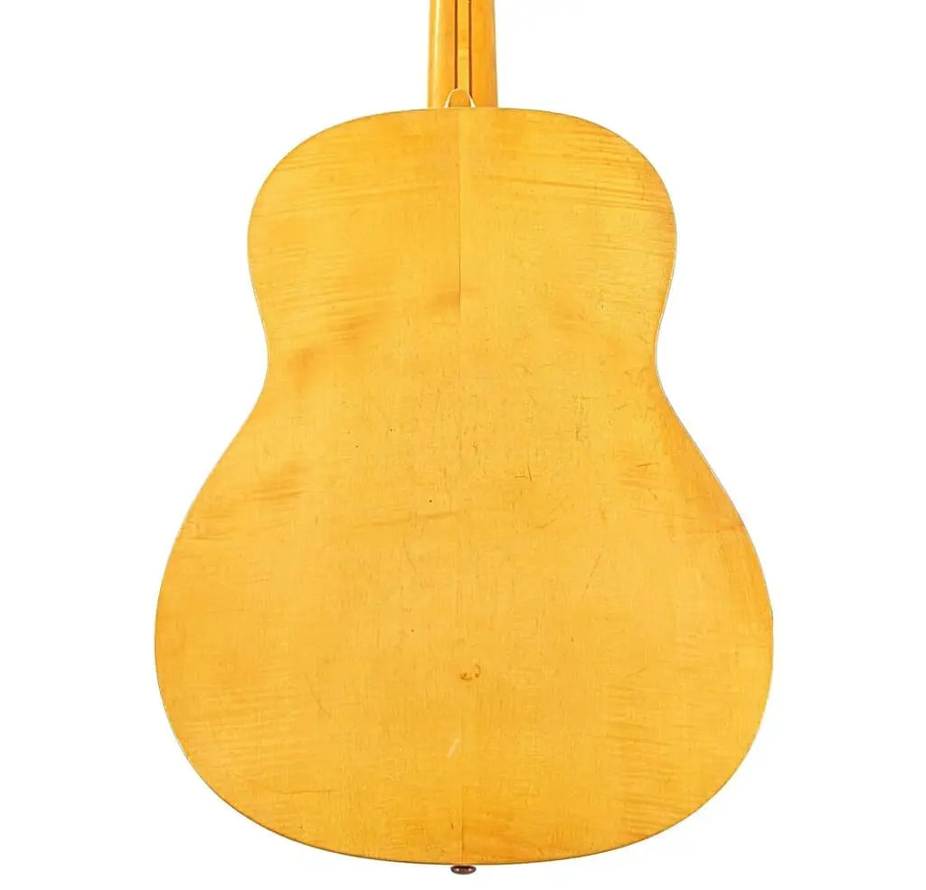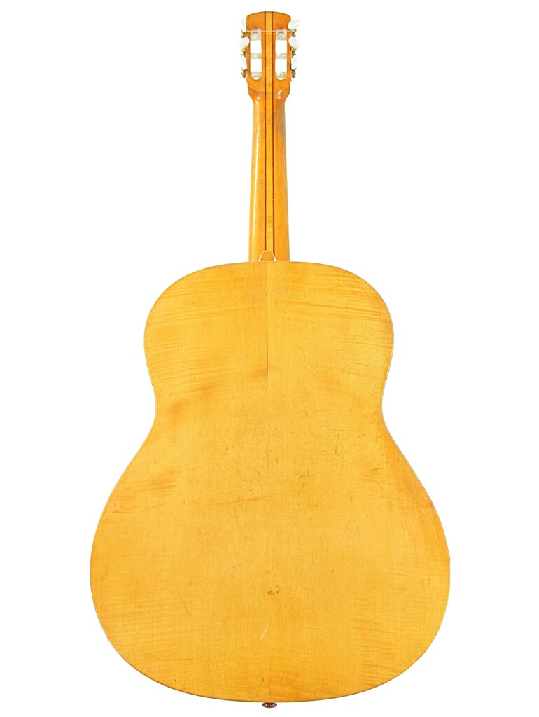 The guitar has a top made of German spruce, back and sides made of maple and a fingerboard made of rosewood. The scale length is 650 mm and the nut width is 50 mm. The guitar is in good condition, but has some wear from play and use. It is also equipped with an adjustable (Stauffer style) neck.