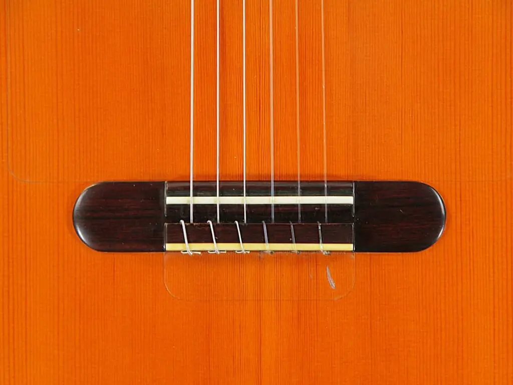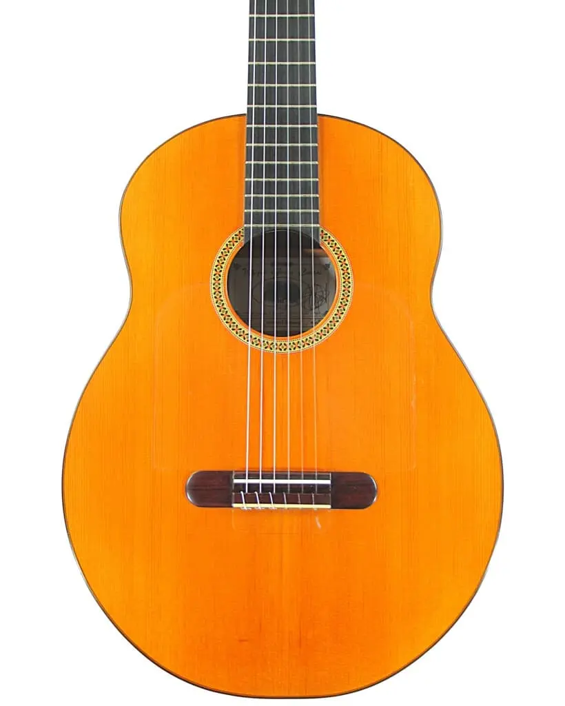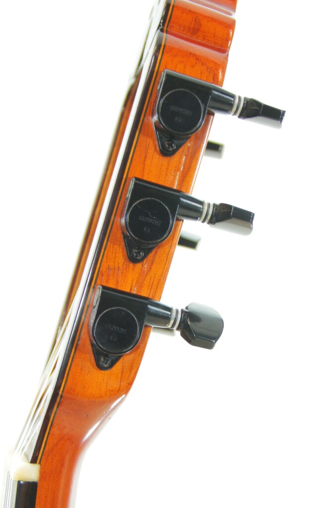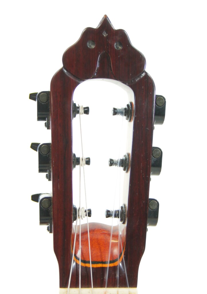 This guitar was built in 2005. It has a spruce top and cypress back and sides. The scale length is 650 mm and the nut width 52 mm. It has this unique headstock and body form, which will instantly catch your intention.