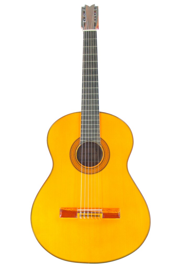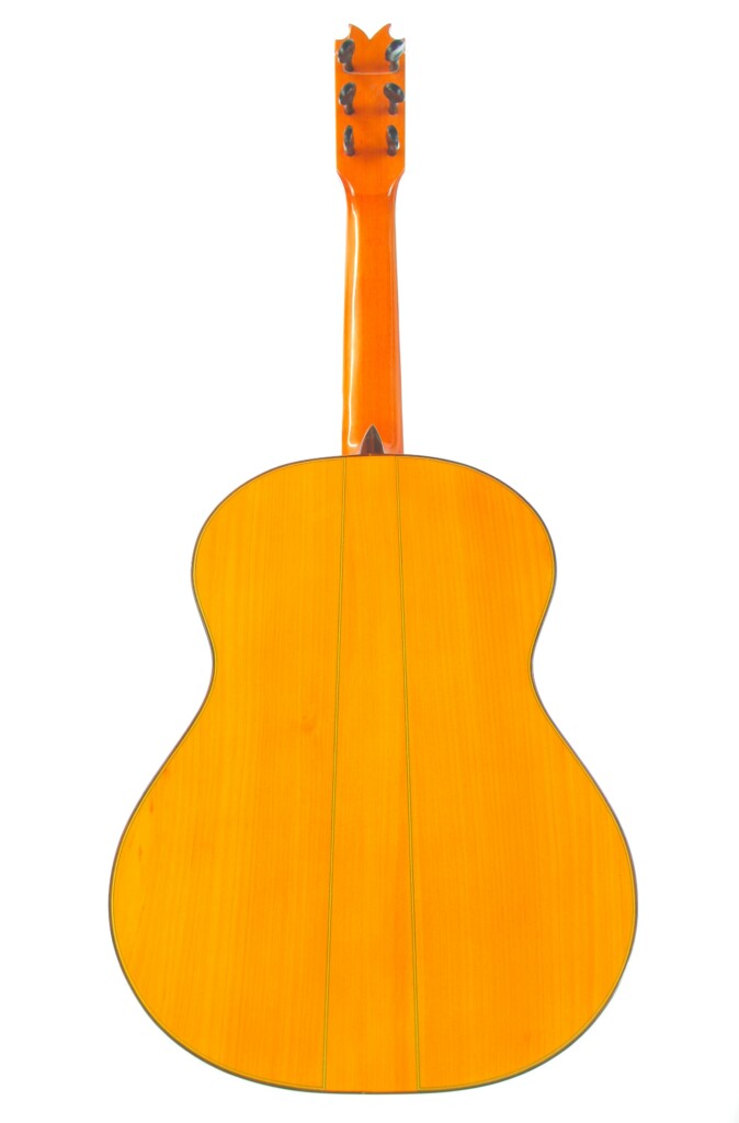 It has beautiful basses and is nevertheless a very balanced instrument. The tone is a perfect blend of beauty and true flamenco aggressiveness. If massaged by the player, it sings with a sweet voice that is warm and full, but if pushed, even just a little – it awakens with a powerful bark that only the best flamenco guitars can produce.