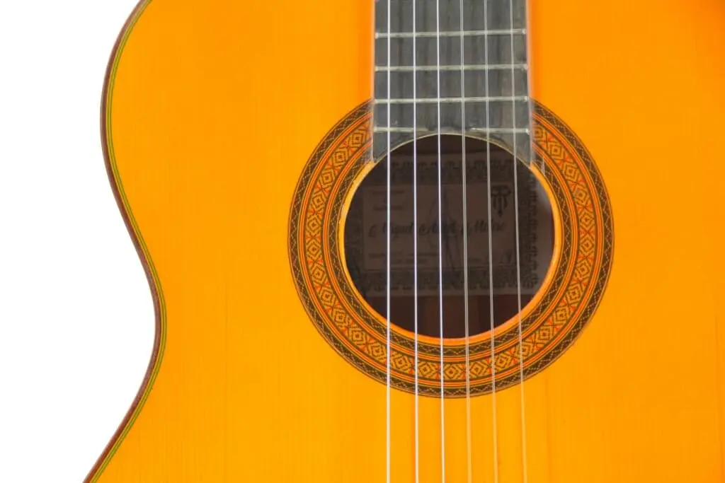 This Miguel Molero 2019 flamenco guitar is very light and has a spruce top and beautiful cypress back and sides.