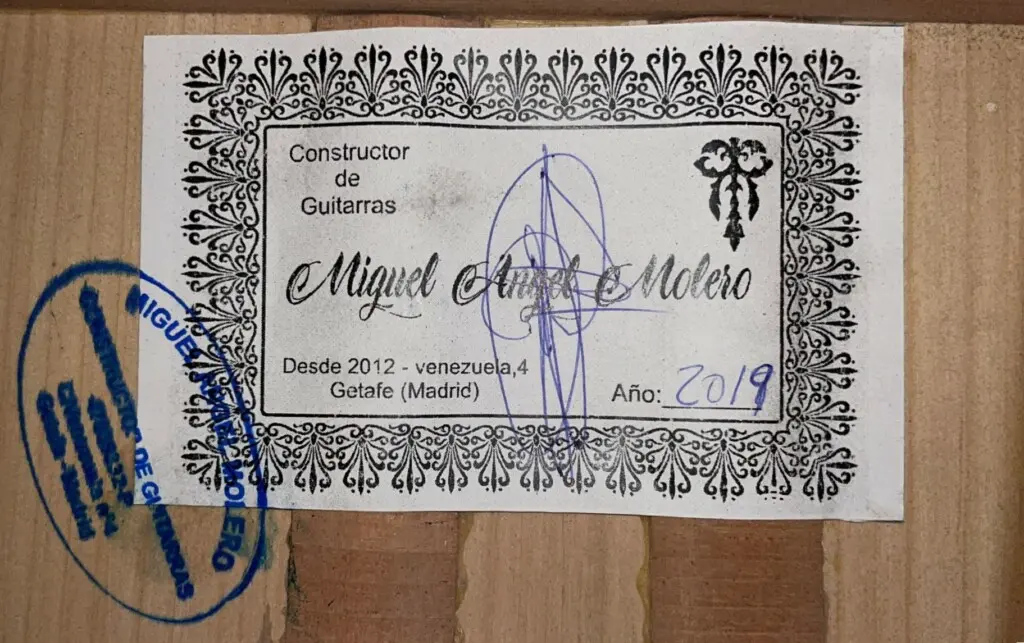 Miguel Angel Molero was born in Madrid in 1980, he started building guitars at a young age and is passionate guitar player. He then studied with the great master Arturo Sanzano, who worked for Ramirez many years.