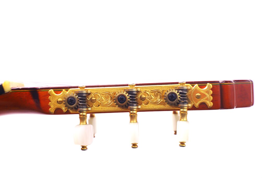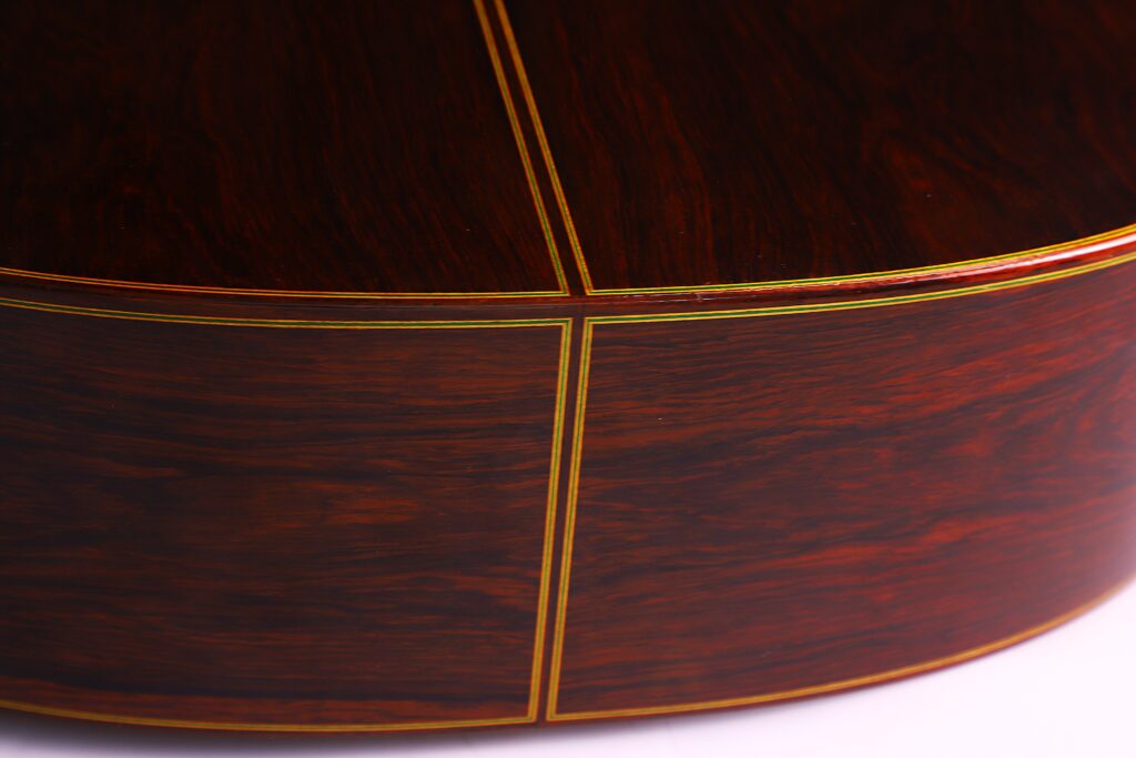These materials were chosen specifically for their tonal qualities, beauty, and stability. The refined ornamentation and clean workmanship throughout the instrument showcase Bernabé’s eye for detail and commitment to excellence.