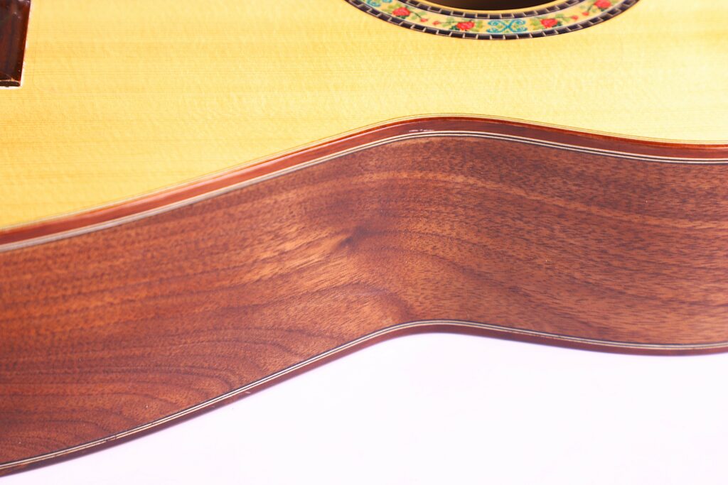 This Pedro Fernández Luque 2024 Negra Flamenco Guitar has a gorgeous spruce top and rosewood back and sides. The scale length is 650 mm and the nut width 52 mm. It plays easily with a low action (2.7 mm E and 2.1 mm e at the 12th fret), a comfortable neck and good frets.