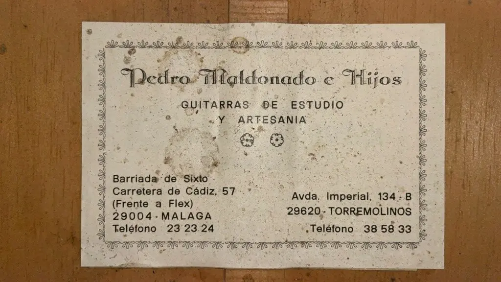 Very soon Pedro Maldonado had interest in guitar building. His father took him to Granada in order to develop this art with the help of some guitar makers from the famous “Escuela Granadina”. He learned and worked with Manuel de la Chica, Eduardo Ferrer and Antonio Robles.