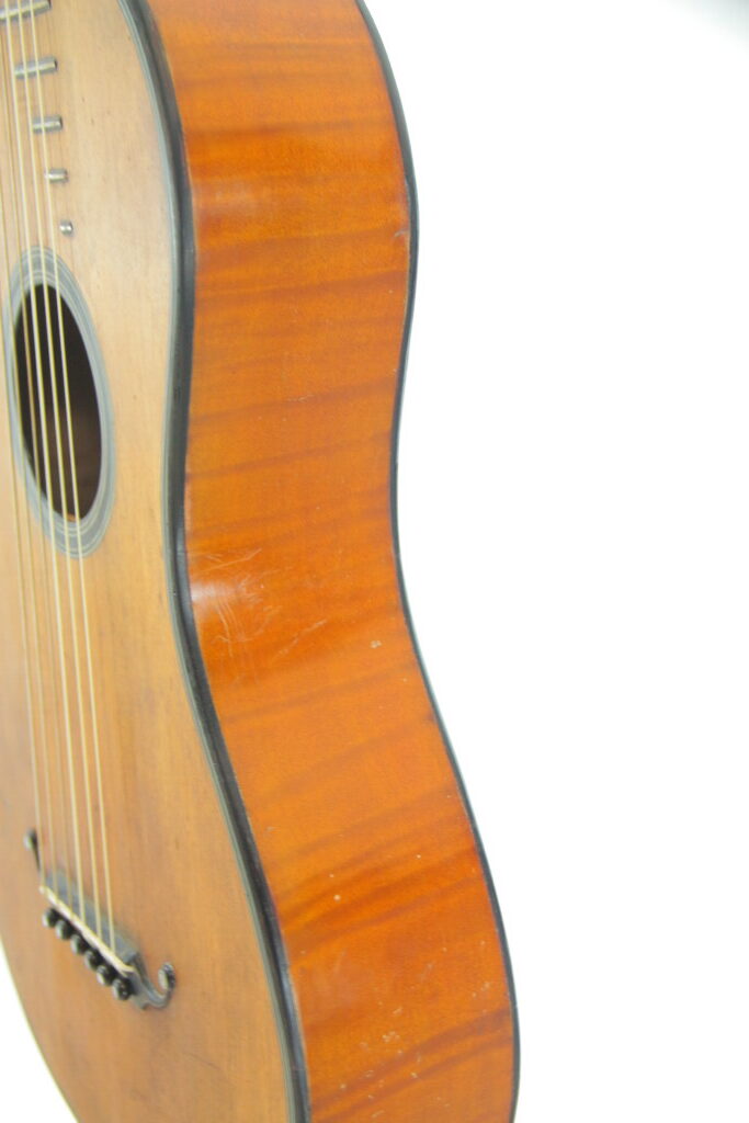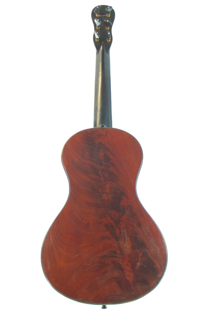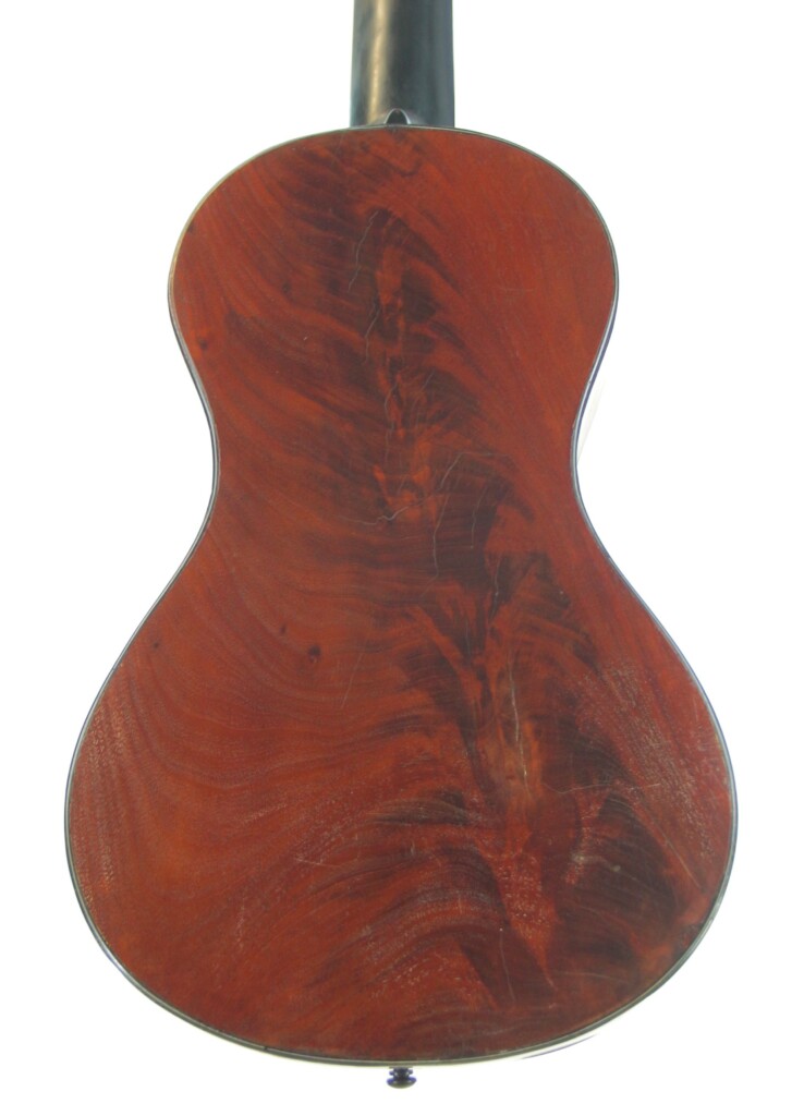 This splendid guitar, built around 1815, is a rarity. It has a sruce top and maple back and sides. The fine tuners are replacements true to the original. It is in amazing condition for its age and has just a small repair on the top. The guitar plays great, with a straight neck and a pleasantly low action.