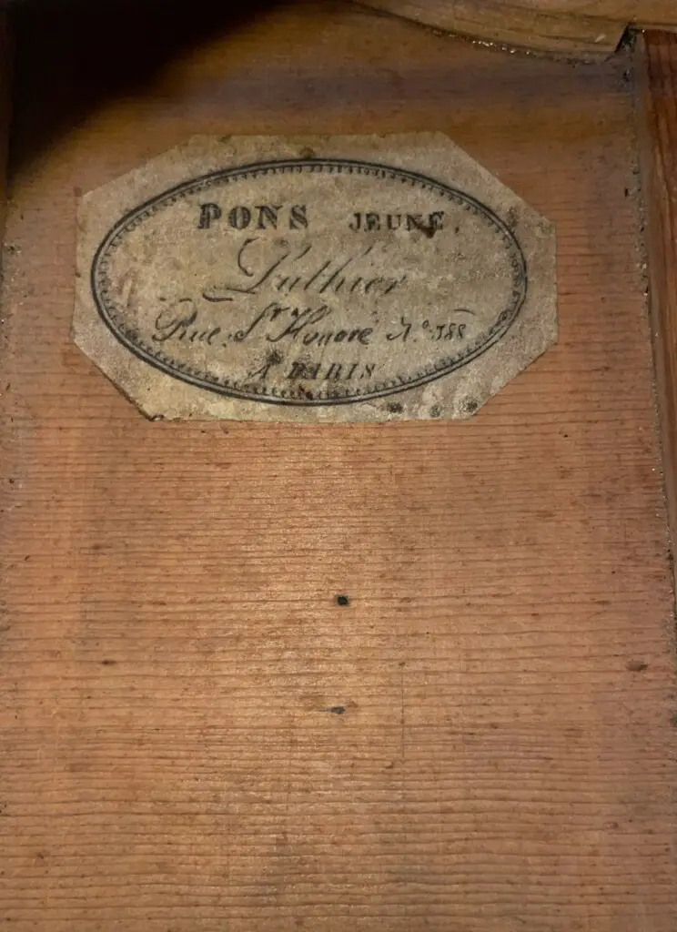 The Pons are among the most famous 19th century French luthier dynasties. Rene Lacote was taught by Joseph Pons. The inscription on the label of one of the first Lacote guitars reads : « Mr. Pons’s student ». César Pons (1748-1831), the father, worked in Grenoble. His two sons Joseph Pons (born in 1776), known as “Pons the elder” — and Louis-David Pons (born in 1785), known as “Pons Jeune”, settled in Paris.