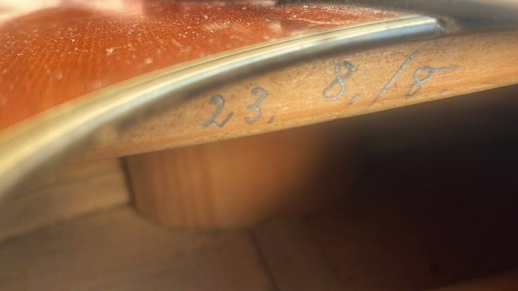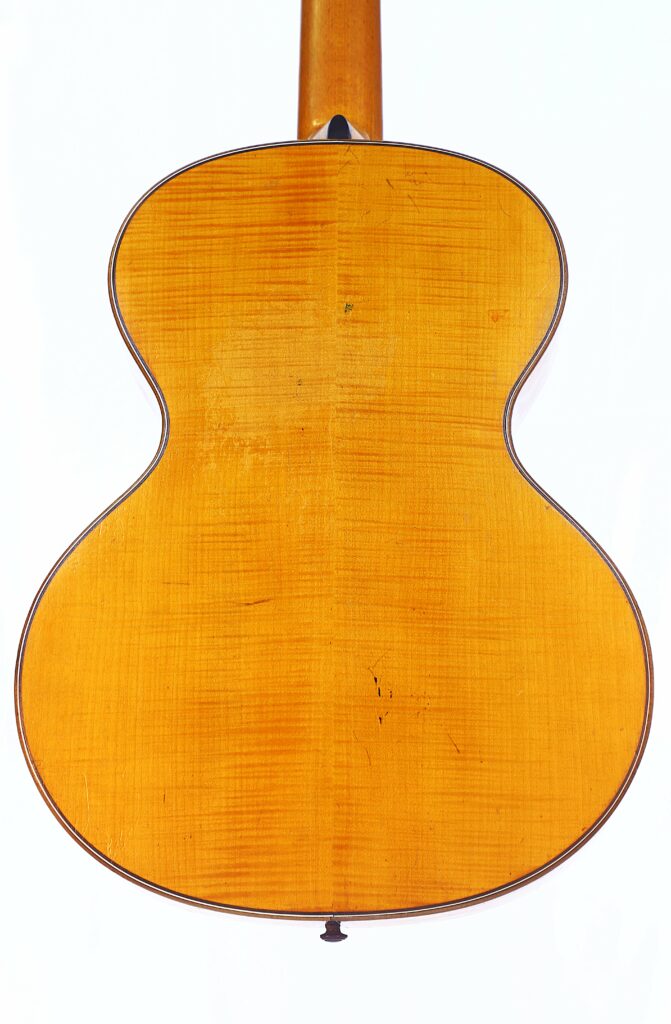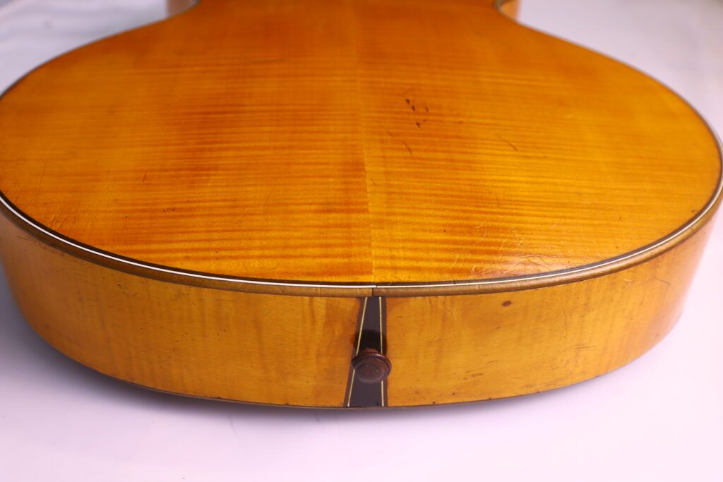 This specific instrument is a Vienna Model from 1923, notable for its elegant simplicity, compact body size, and smaller scale length, making it very easy to play with a scale length of 625 mm and a nut width of 45 mm. It is similar in body size than many Hauser Vienna models we had.