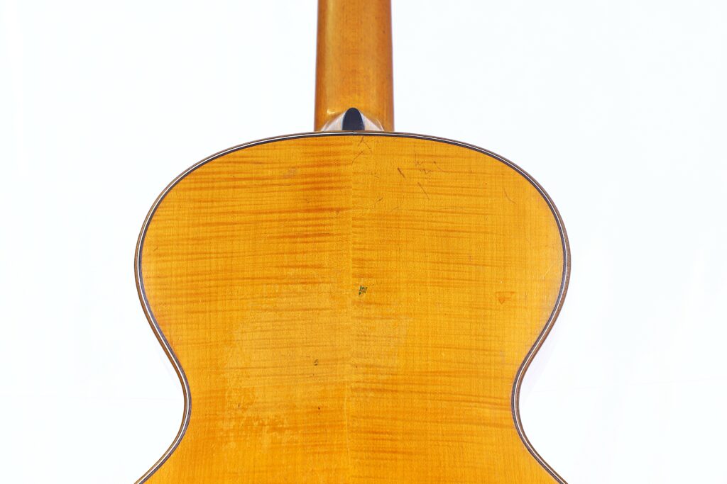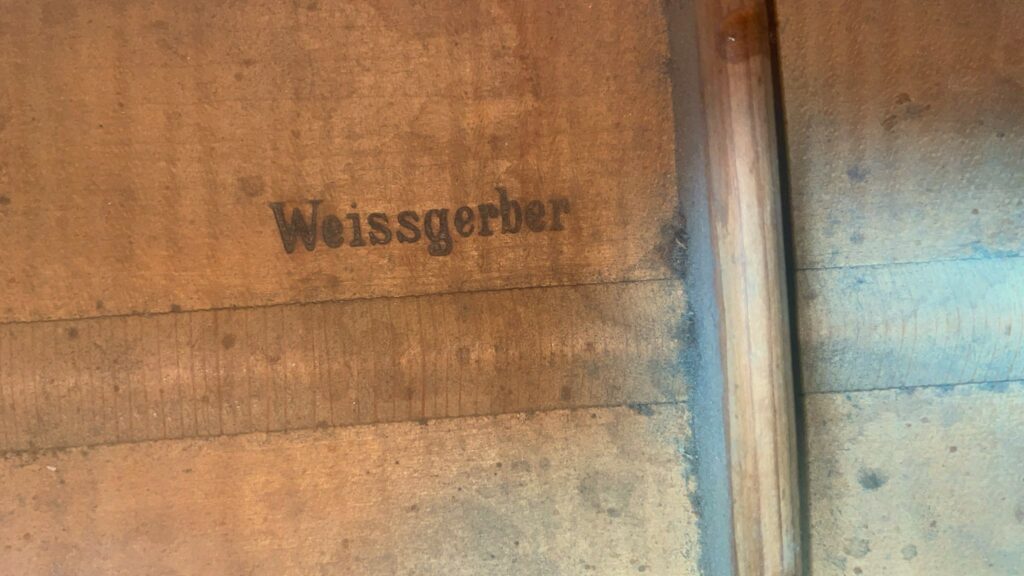 Early in his career, Weissgerber patented his name as a trade mark, allowing him to innovate freely. Initially building in the popular Viennese style, he later developed unique models with exquisite finishes that set his instruments apart in the bustling guitar-making city of Markneukirchen. He traveled extensively, engaging with various guitar styles and participating in the “Guitar Movement” in Germany. Influenced by notable guitarists like Miguel Llobet and Andres Segovia, his work gradually leaned toward Spanish guitar traditions while retaining his experimental approach. Weissgerber dedicated himself to guitar making until his passing in 1960, leaving his son Martin to continue the workshop until 1990.
