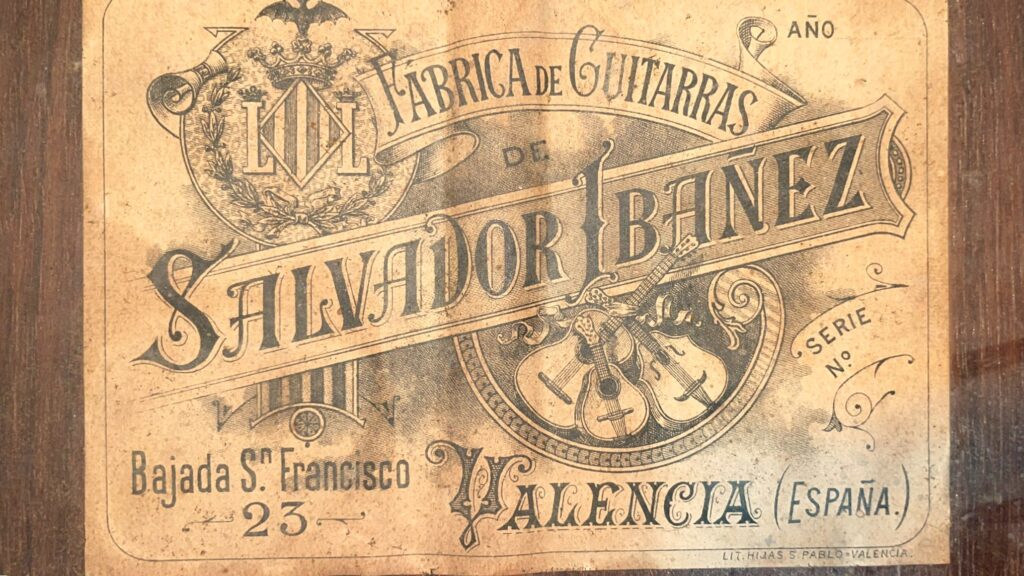 Salvador Ibáñez (1854–1920) was one of the finest luthiers of his era, renowned for building instruments of outstanding quality and precision. His workshop in Valencia produced bandurrias, lutes, six- and nine-string guitars, and even innovative designs such as the world’s first double-necked guitar in 1897.