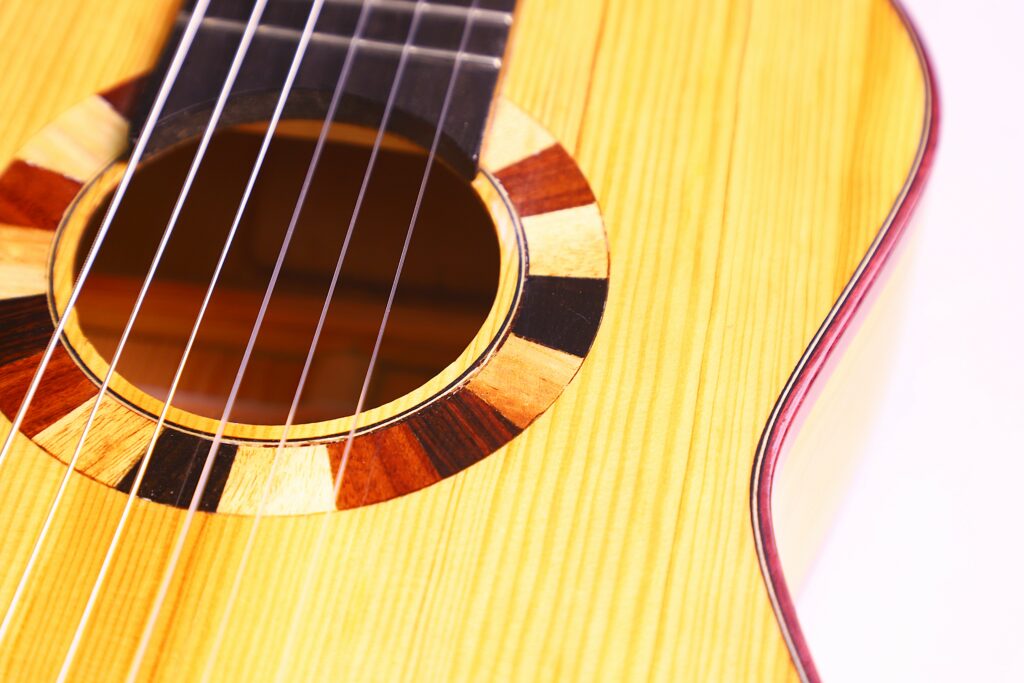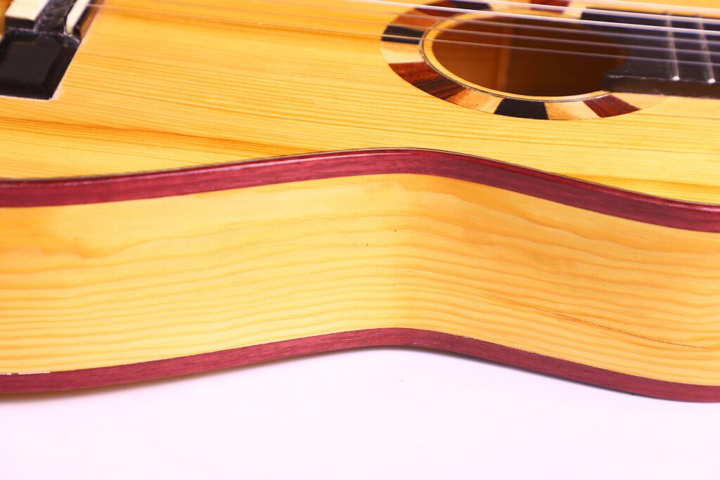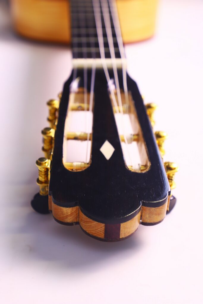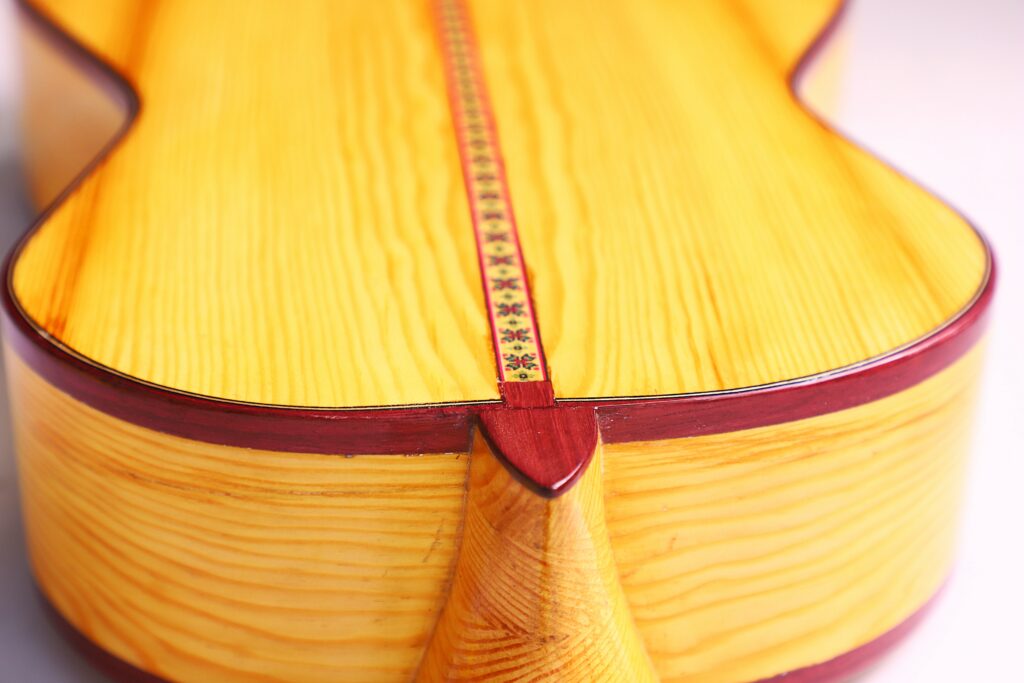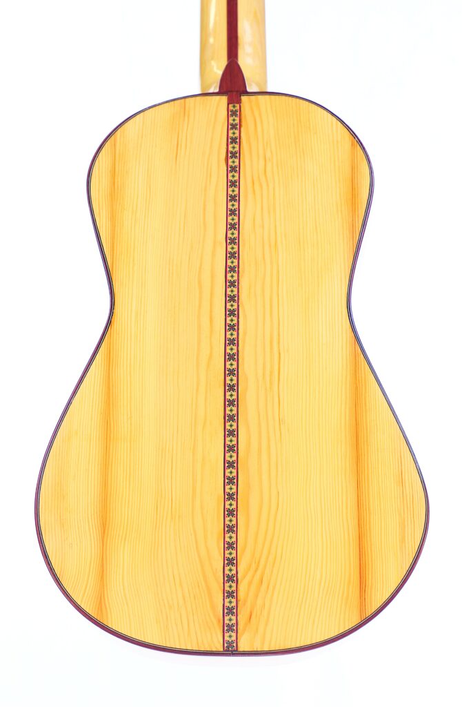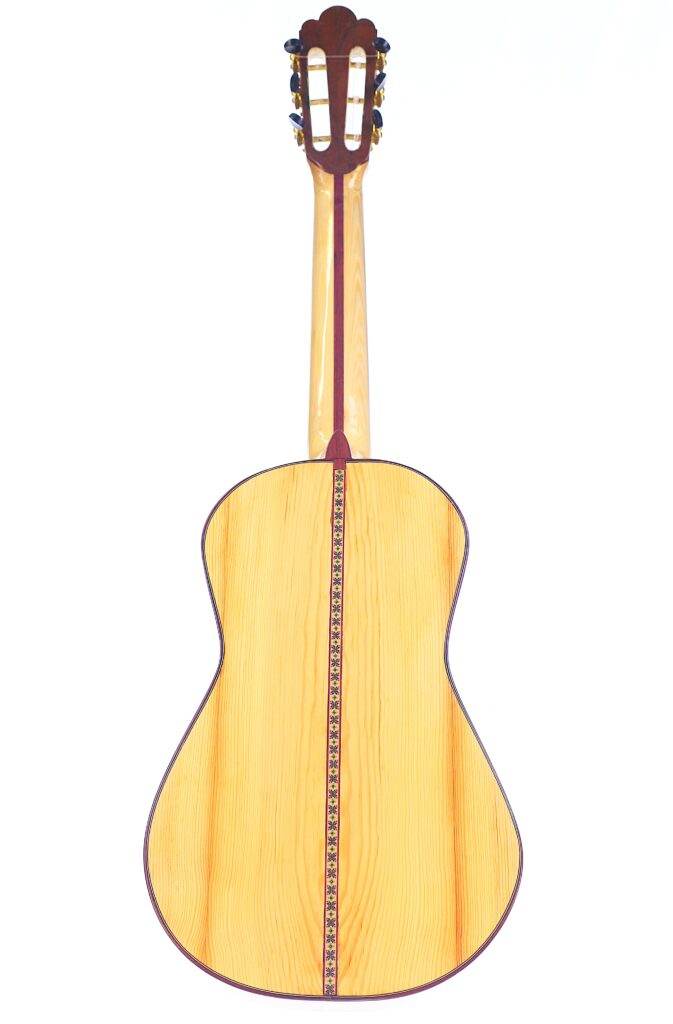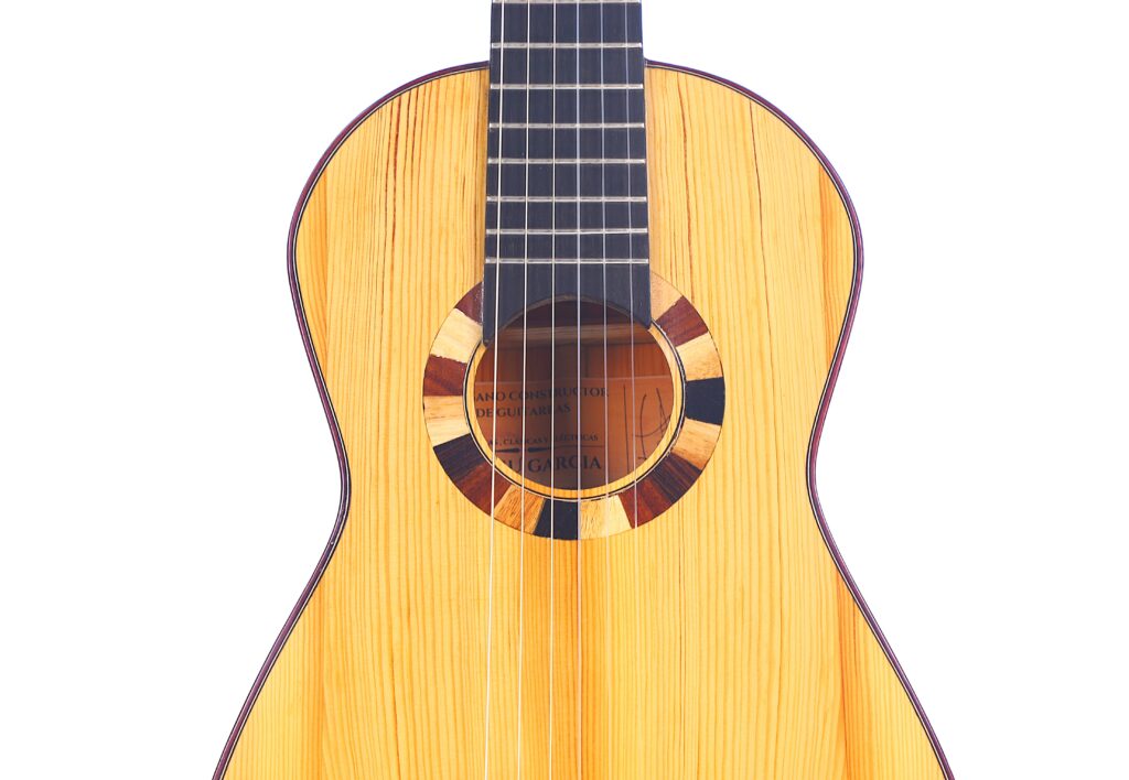A distinctive feature of the Siscu Garcia 2024 Torres Romantic Guitar is its 5-fan bracing. This traditional construction optimizes the top’s vibration properties, ensuring exceptional tonal richness and dynamics.