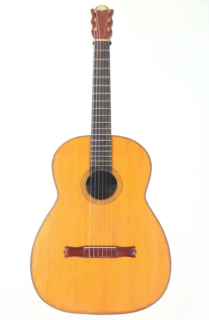 Thanks to its ultra-light construction, it responds instantly to every nuance of playing and offers impressive tonal modulation as well as dynamic expressiveness. Its exceptional sound power dispels the myth that old guitars lack volume or presence. With its characteristic sound, it is ideal for interpreting music from the 19th and early 20th centuries, particularly the works of Francisco Tárrega. The clear separation of notes and the colorful tone of this guitar perfectly capture the essence of Tárrega’s compositions, from his lyrical melodies to his complex and layered polyphonies.