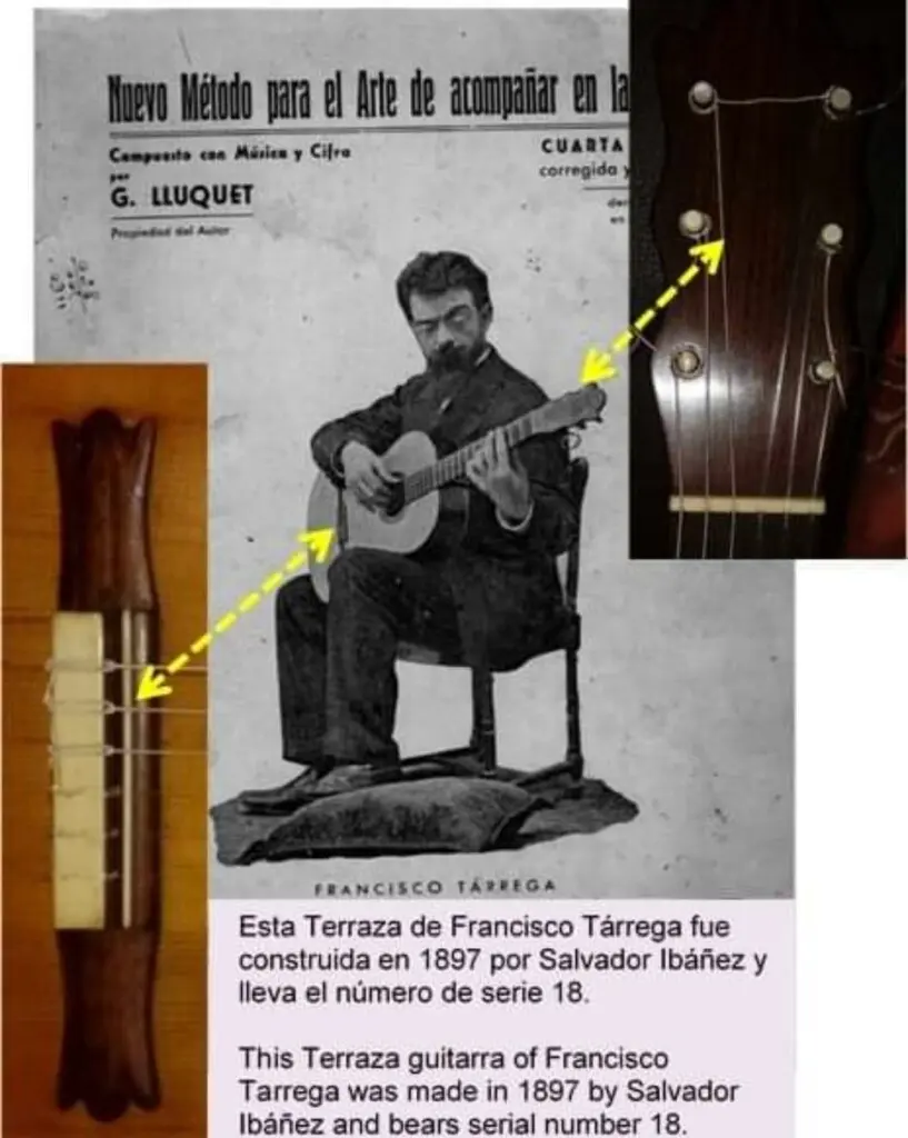 These guitars were highly regarded in the musical world of the time and were considered luxury models with exceptional sound quality. In 1897, Francisco Tárrega commissioned such a guitar from Salvador Ibanez. This guitar still exists today and is part of a private collection (see attached pictures).