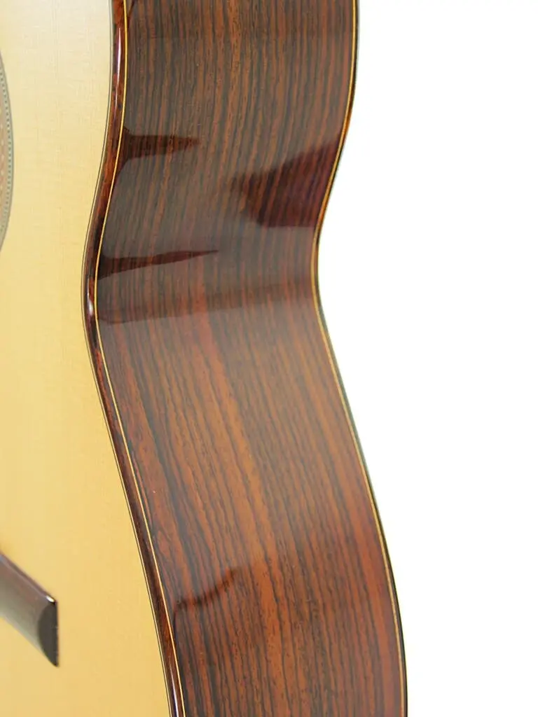 The lightweight construction of this Thorsten Sven Lietz 2015 Torres classical guitar results in a remarkably direct response, causing each note to resonate with clarity and immediacy. Its warm, round sound character, coupled with exceptional separation of tones, makes this guitar versatile for a wide range of musical repertoire. The shellac finish not only enhances the aesthetic appeal of the guitar, but also contributes to its rich tonal quality.