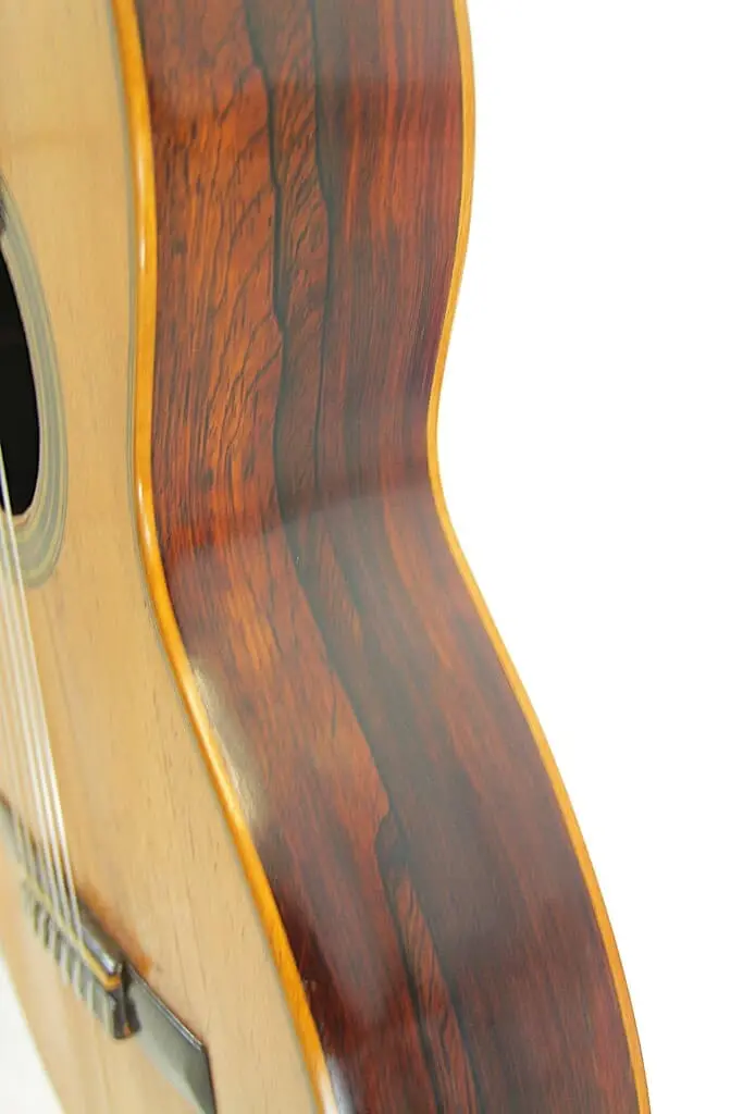 This Vicente Arias 1896 classical guitar has a spruce top and rosewood back and sides. The scale length is 640 mm and the nut width 50 mm.