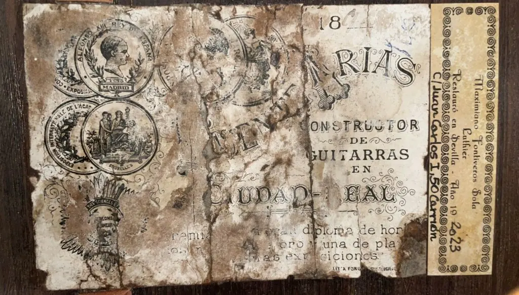 Vicente Arias was born in Ciudad Real, in the south of Madrid. Such as Antonio de Torres, he started as a cabinet maker and was self-taught as a guitar maker. He probably started building guitars in 1860 and won many prestigious prizes around the world i.e. Buenos Aires, Madrid, Brussels, and Barcelona. Famous guitarists such as Francisco Tárrega and several of his students played on his guitars.