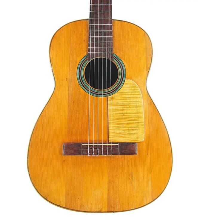 This is a superb and extremely nice sounding guitar by Vicente Arias. Even though the plantillas and bracing systems (and degree of ornamentation) Arias experimented with differed substantially from guitar to guitar, his reputation for producing a consistently beautiful quality of tone is likely the reason for his enduring legacy. And this guitar is a great example of this quality – it is simply exquisite for its quality of sound. While every note is rich in overtones, it retains an almost unbelievable degree of separation and clarity between voices. Due to its ultra-lightweight build, the production of sound is immediate, with an ample amount of tonal modulation and dynamic range. This guitar also boasts enormous power, which will immediately put to rest any rumor that old guitars don’t have much sound!