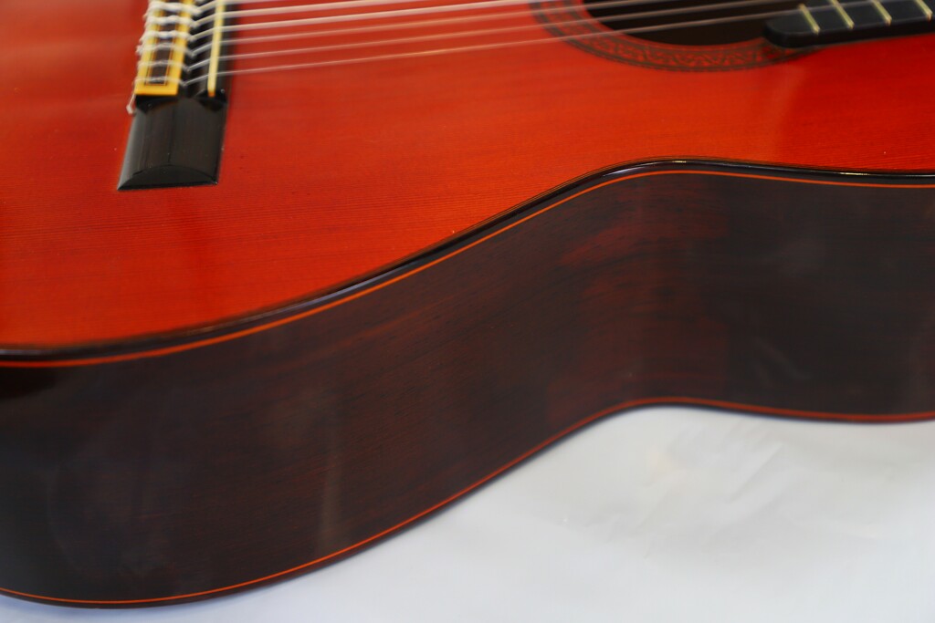 The hallmark of this Ramirez guitar is its rich, warm tone imbued with a mysterious and evocative character that defines the Ramirez sound. The dynamic range is impressive, delivering a powerful, cathedral-like resonance with every note. Each tone is intensely focused, with harmonics that create an almost ethereal echo effect, enveloping the player and audience alike. Whether experienced from the playing position or at a distance, the sound has an undeniable presence and depth.
