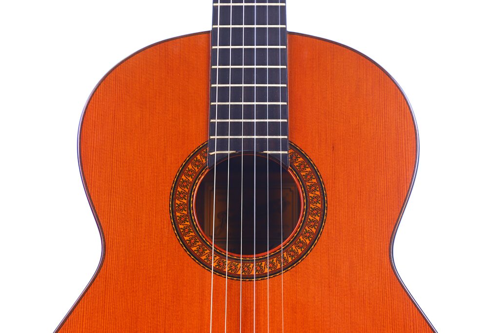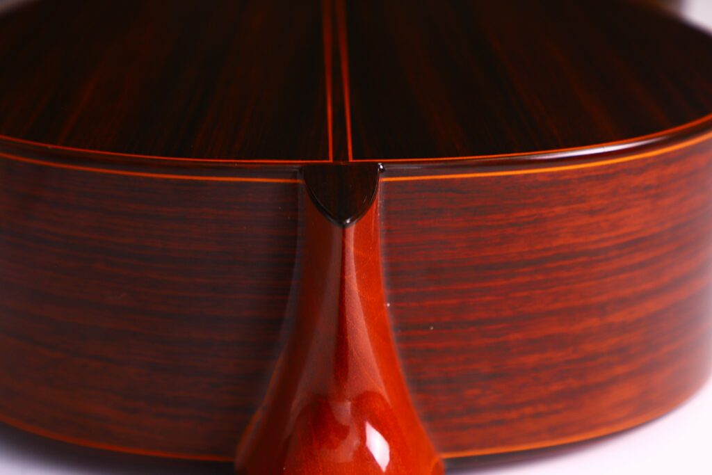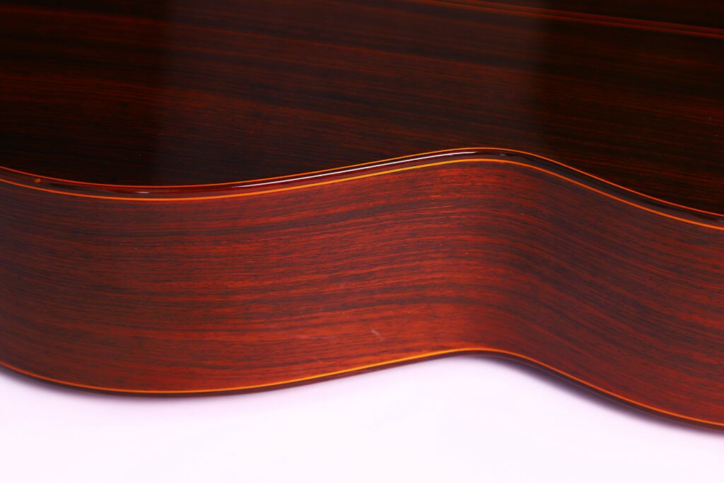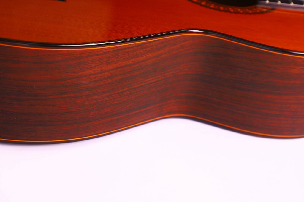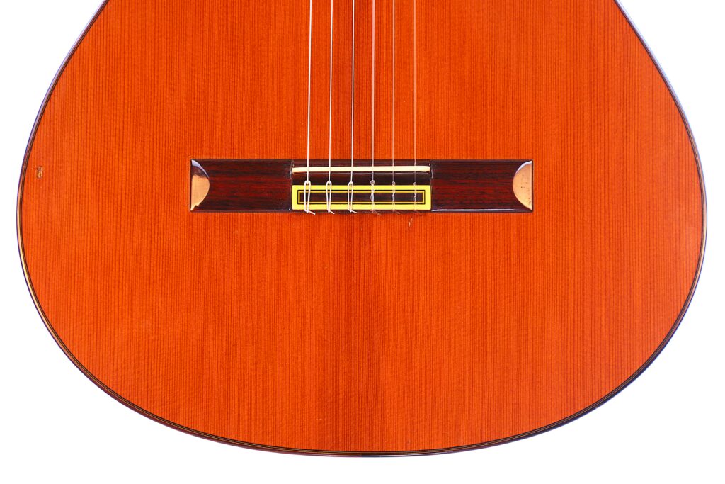 The sound produced by this guitar is everything one could hope for in a Ramirez masterpiece: full, robust, and profoundly deep. It beautifully balances thickness and clarity, enveloped in a warm, mysterious tonal character. Each note resonates with controlled and balanced layers of overtones, enhancing the crystal-clear fundamental. The guitar’s tone carries a cathedral-like presence, delivering immense power that is perfect for any concert hall. It truly embodies the essence of a “concert grand” guitar, possessing a commanding and thunderous presence.