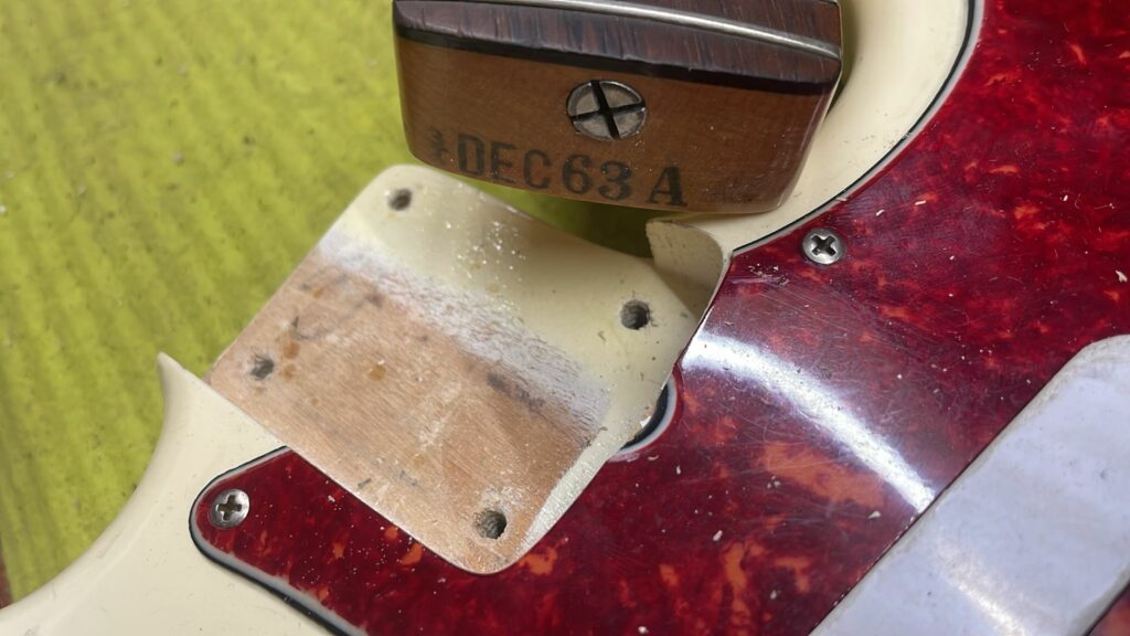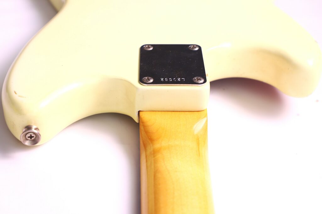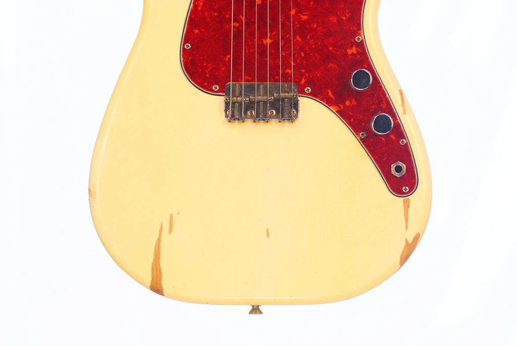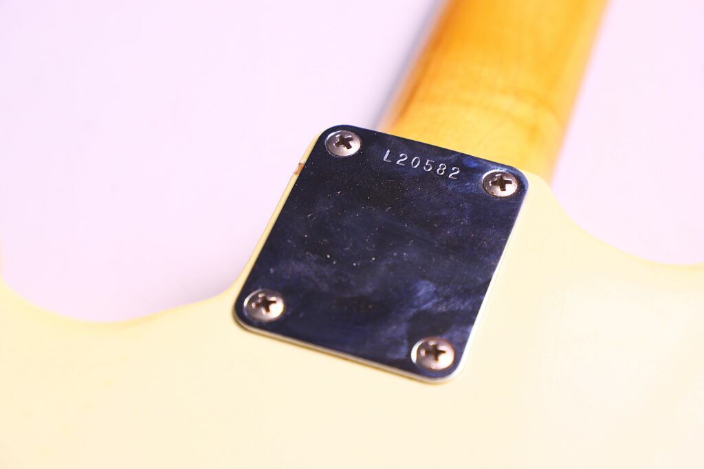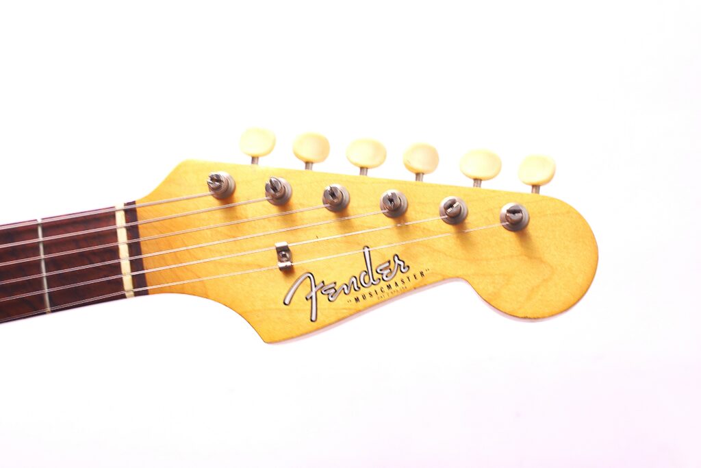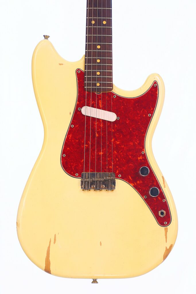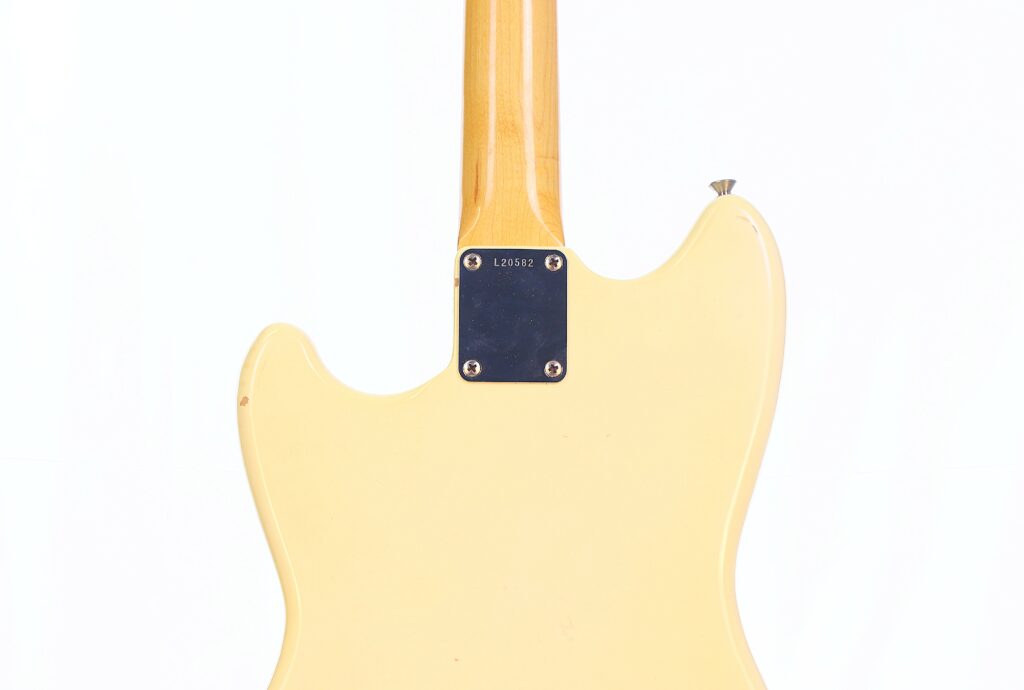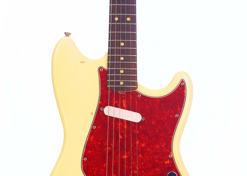 Fender Musicmaster 1963 Electric Guitar – this is an authentic Pre-CBS Fender Musicmaster in Olympic White. It is all original and comes with the original case. The neck date is from 1963, while the serial number is from early 1964.
