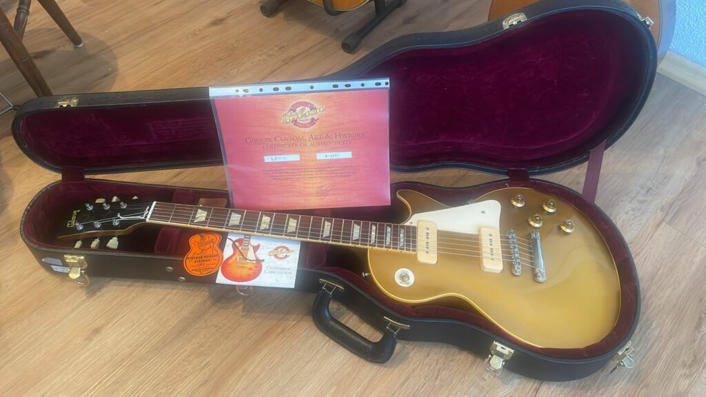 With an impressive 19-year history, this Les Paul is not just an instrument; it’s a vessel of musical stories and experiences. The guitar has P-90 pickups, enhancing its tonal versatility while maintaining the warm, rich sound that Les Pauls are known for.