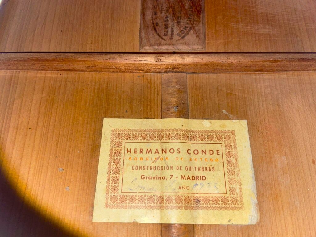Their guitars gained worldwide fame when Paco de Lucía adopted them as his signature instruments in the late 1960s and early 1970s. From that moment on, the Conde sound — deep, powerful basses and crystalline, singing trebles — became the benchmark for flamenco guitars. In countless vintage TV recordings from that era, nearly every young guitarist could be seen playing a Conde.