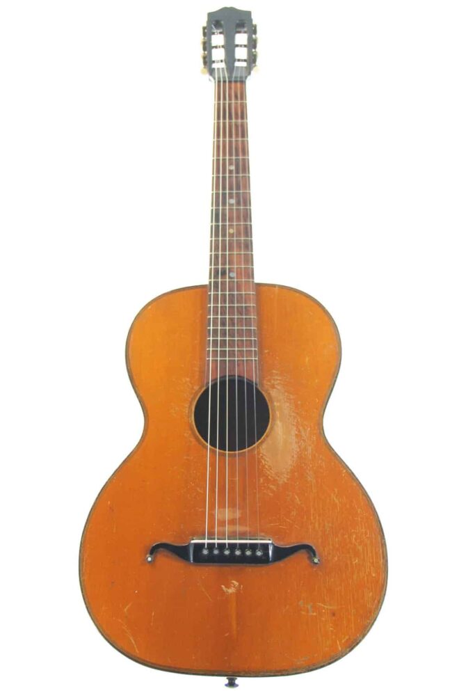 The guitar has a top made of German spruce, back and sides of flamed maple. The scale length is 640 mm and the nut width is 47 mm. The original shellac polish is in good condition with showing traces of playing and use. However, the guitar is in very good condition and has no cracks or repairs.