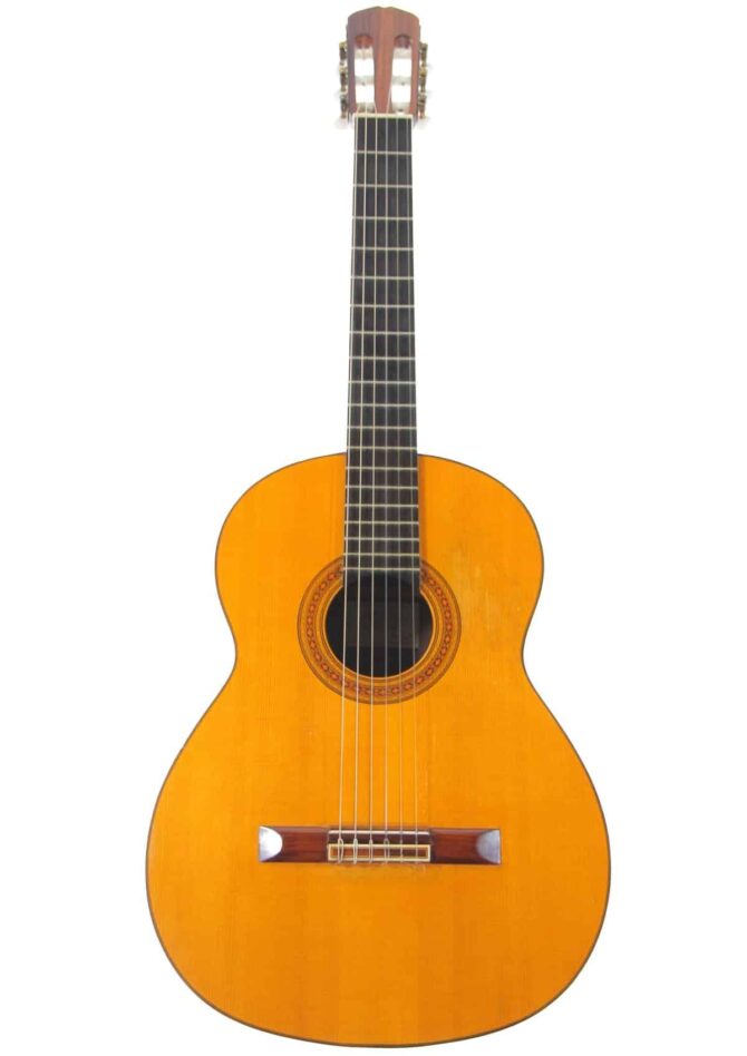 The guitar is built with a traditional 7-fan bracing and is in good condition, but has signs of play and use. The top has taken on a beautiful colour over the years. Back and sides are made of fine rosewood. The scale length is 650 mm and the nut width 52 mm.