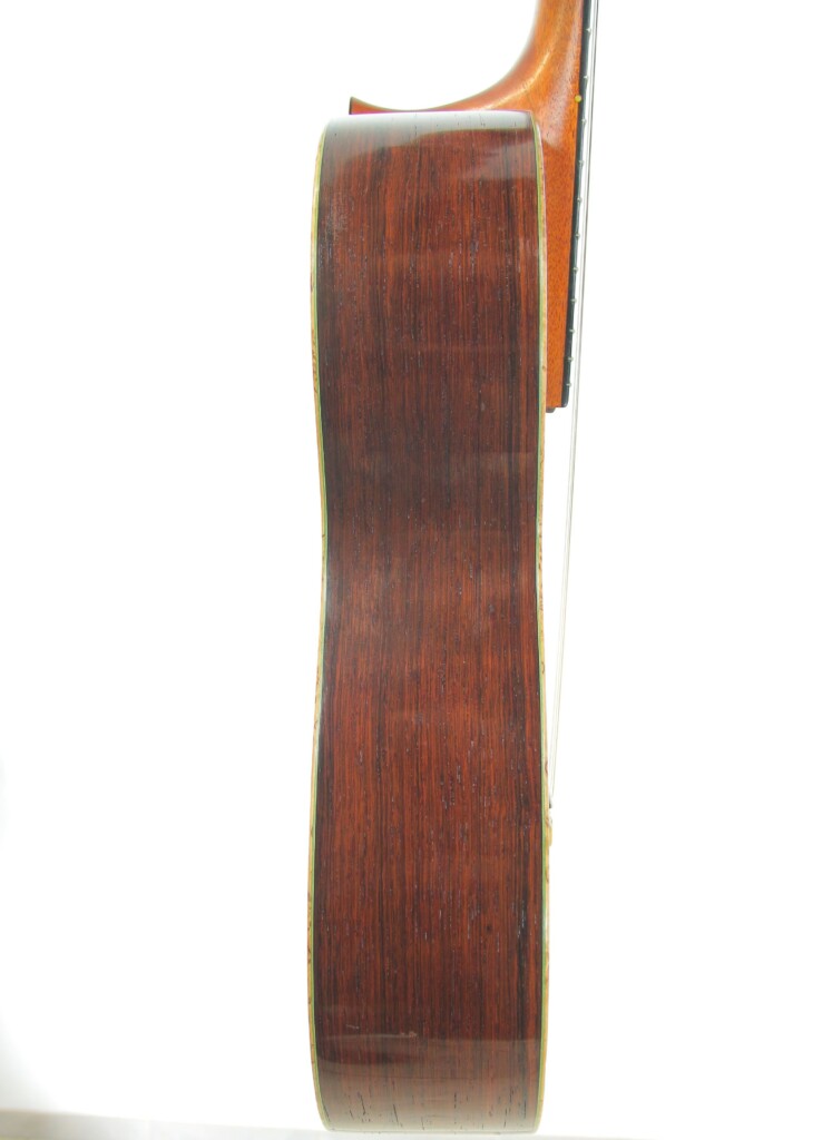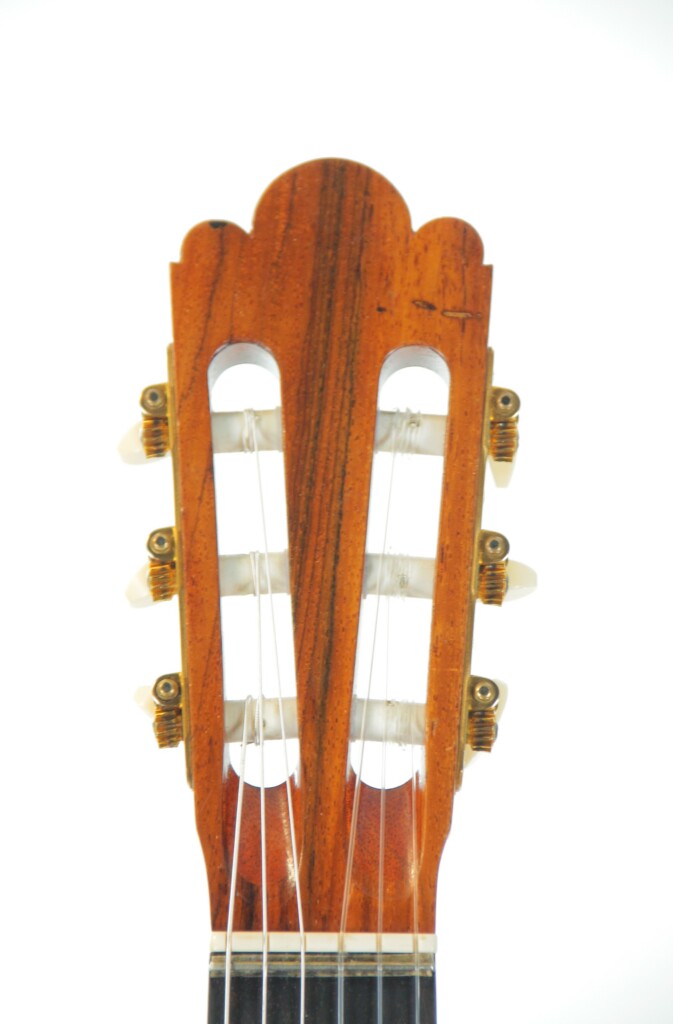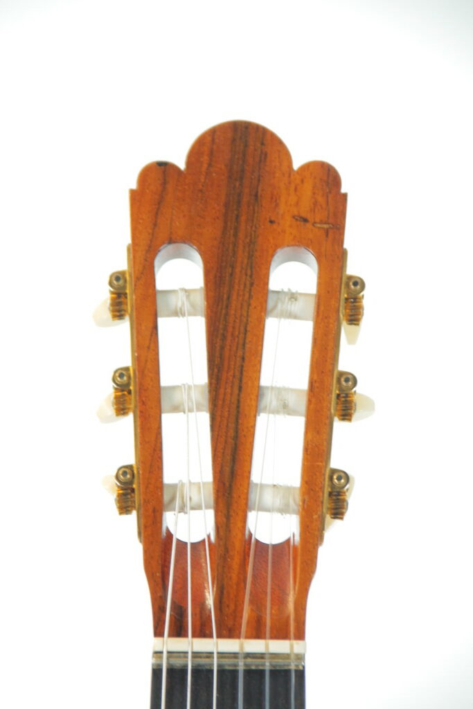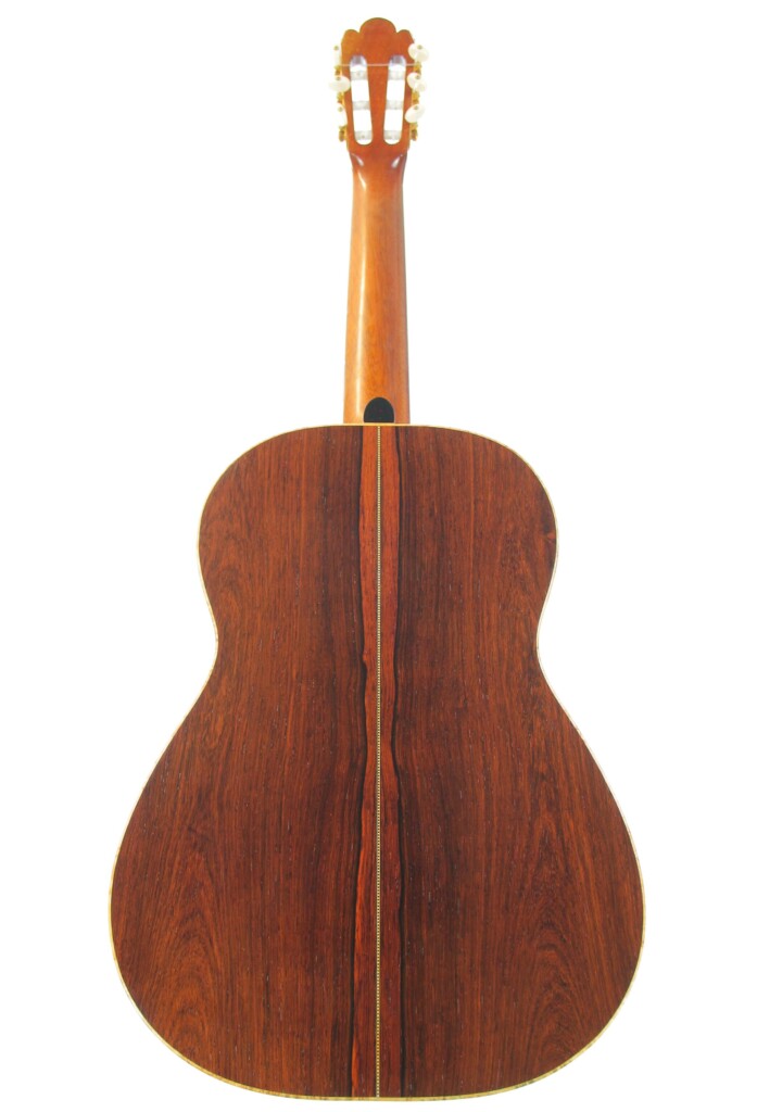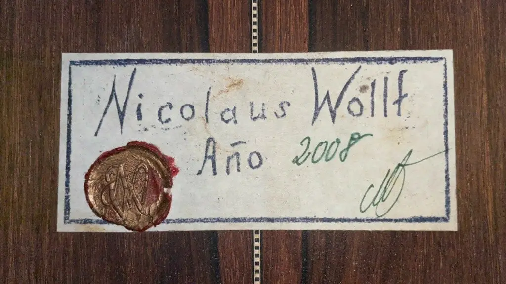 This guitar from the year 2008 is a fantastic masterpiece by Nicolaus Wollf. It has a fine spruce top and back and sides of magnificent madagascar rosewood. The scale length is 650 mm and the nut width 52 mm.