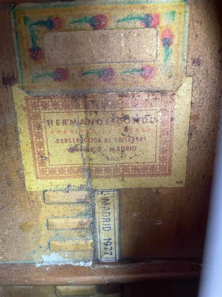 Rocked hard, but what a sound … this guitar has most probably seen all stages in Spain and has been played like crazy throughout all the years. Its a beaten up guitar with many scratches and some repairs.
