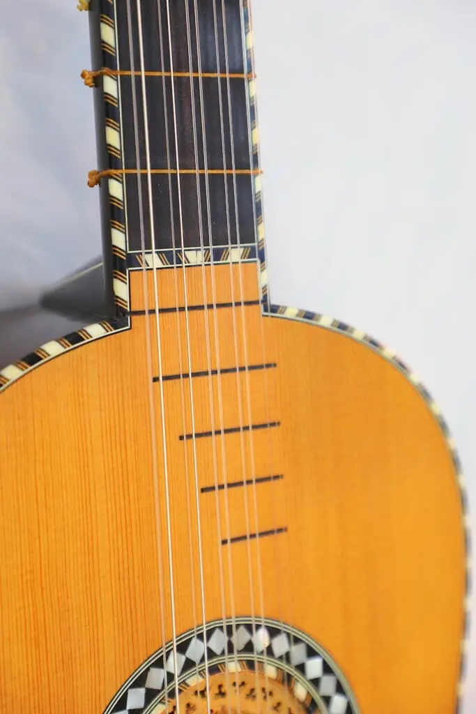 This Baroque guitar, handcrafted by Dieter Hense in 1980, is a true one-of-a-kind instrument that beautifully captures the tonal and aesthetic traditions of the 18th century.